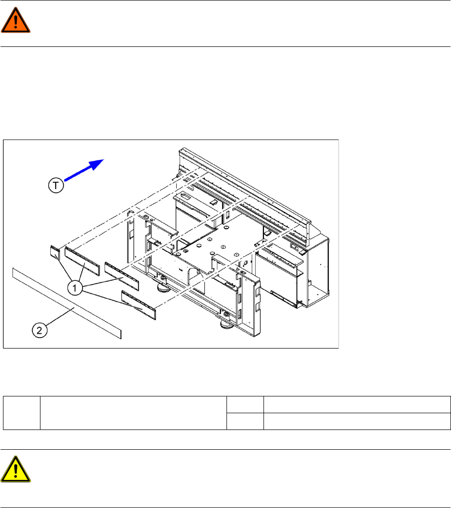 X Remove the black cover strips on the crossbeam above the gantry concerned (3 M6 x 8 hexagon