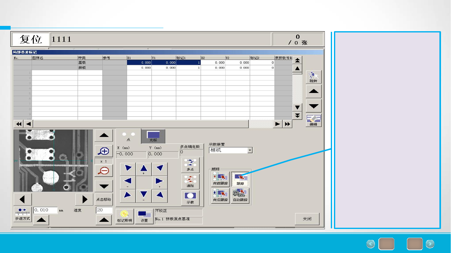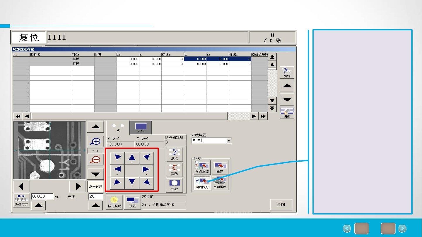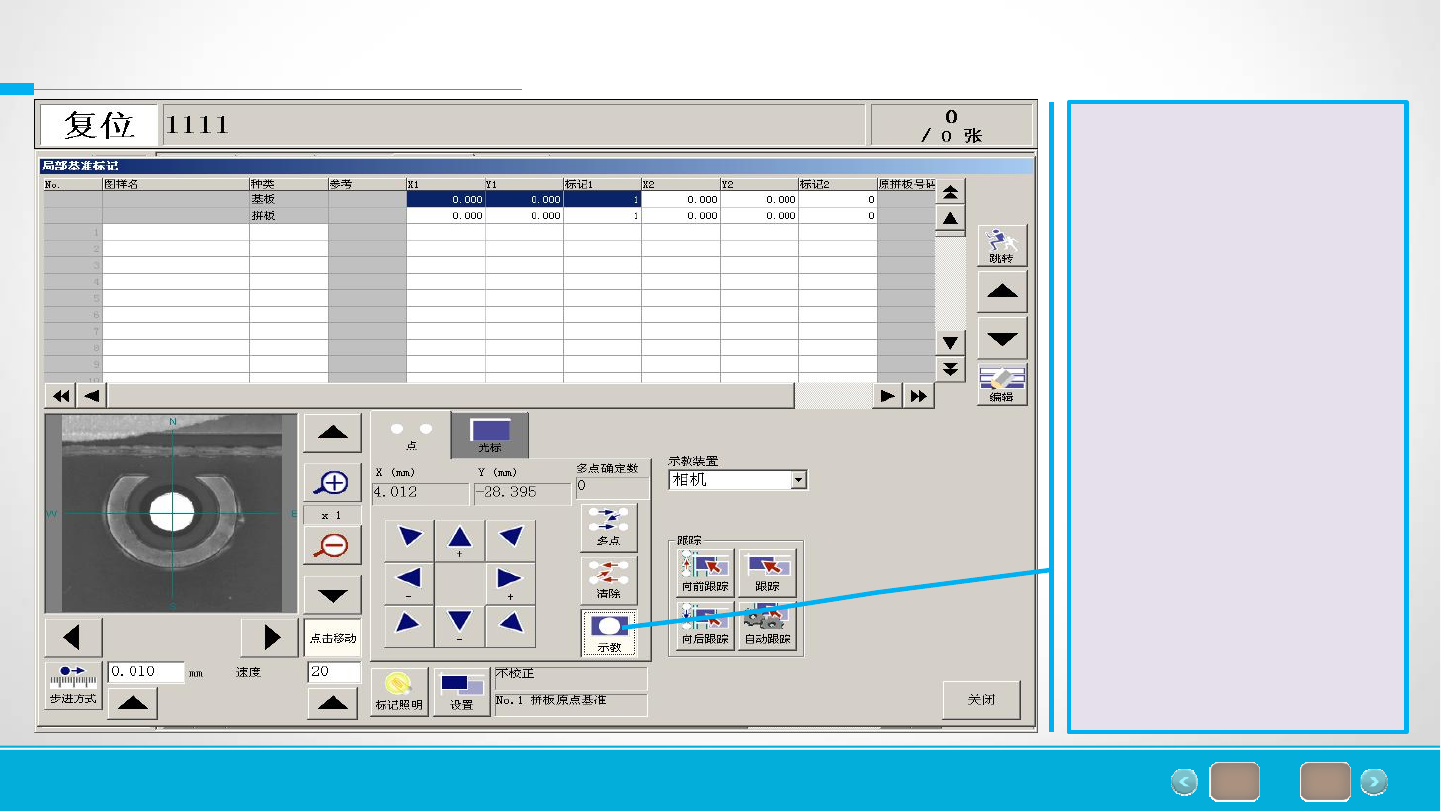 of 66 21 6.基板标记设定 移动鼠标至MARK点处后, 点击示教进行标记1的确 认。