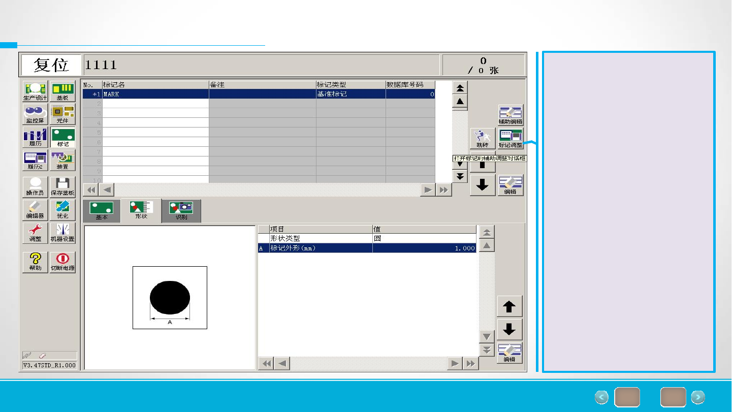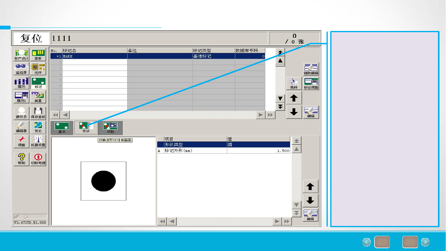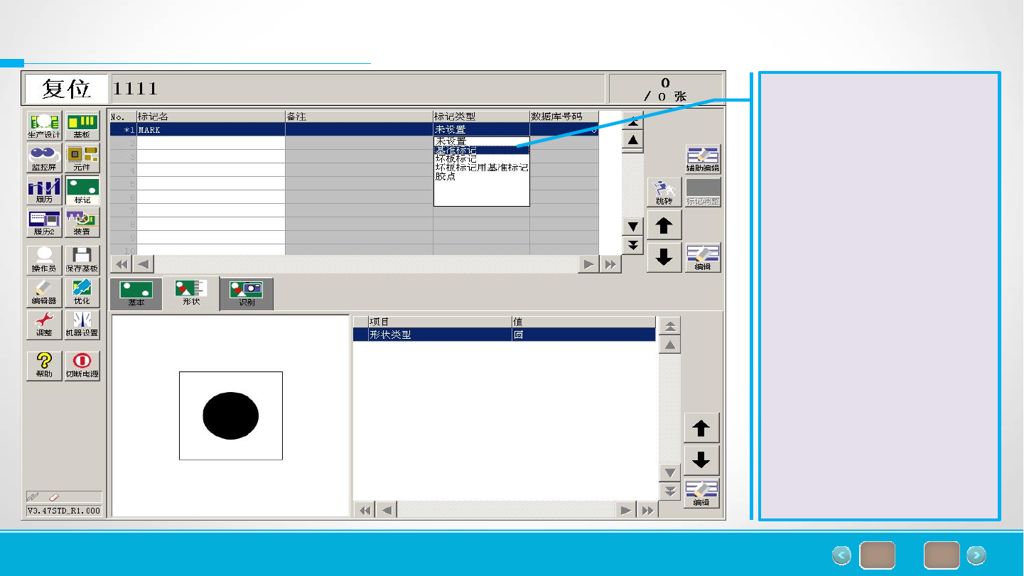 of 66 26 6.基板标记设定 设定完成后,鼠标点击设 定标记形状,在形状类型 中选择相对应标记的形状, 同时输入标记的外形尺寸。