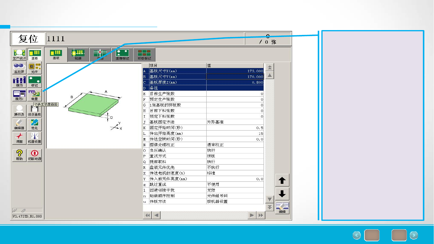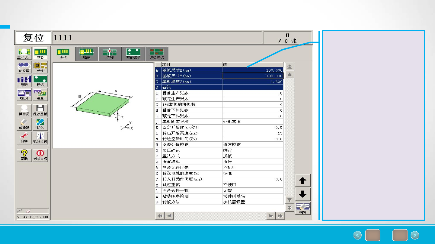 of 66 5 2.2设置基板信息 在基板设置对话框中,用 鼠标点击对应的栏,分别 输入基板的长、宽和厚度。 完成后点击“位移”按扭。