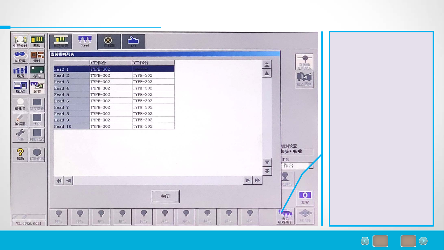 Head界面点击当前吸嘴