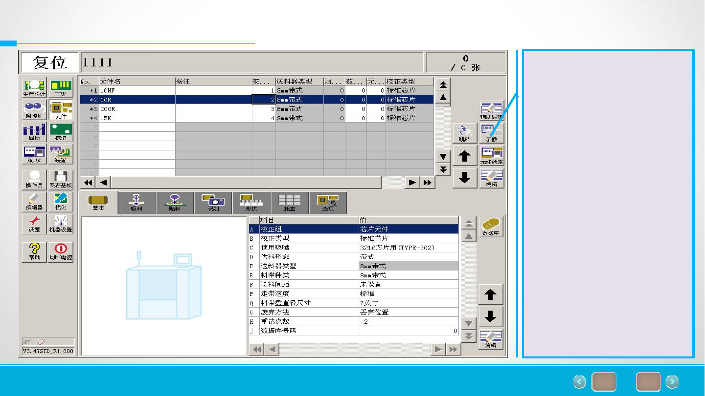 列表,查看吸嘴型号,按