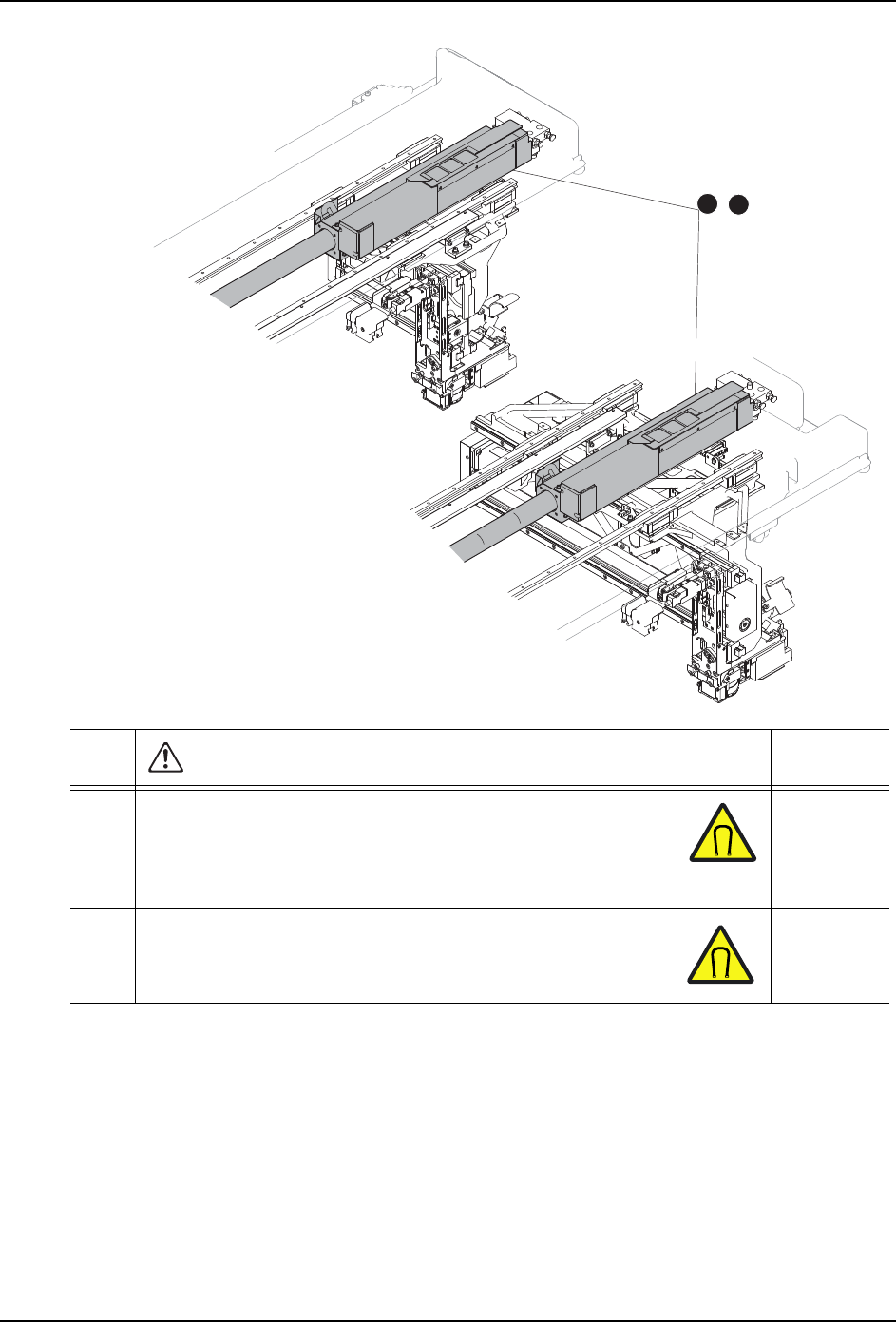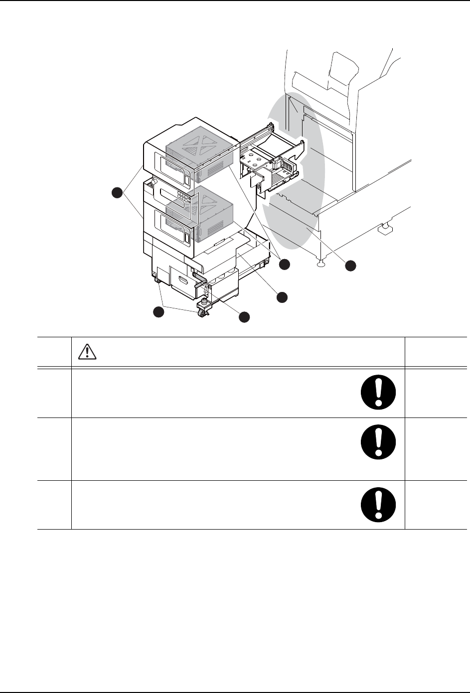 SET-NXT3-006S0 1. 安全指南 NXT III 安装手册 15 1.3.2 料盘单元 -LT/LTC 01MEC-01558 37 38 34 35 36 39 相关章节 34 在将料盘单元 -LT/LTC 安装到机器本体上时,请确认在料 盘单 元 -LT/LTC 与机器本体之间没有他人。 3.9 ·手或者身体有可能被卷入机器 而受伤。 35 当料盘单元 -LT/LTC 处于与机器本体分离的状态时,请锁 住脚 轮。 3.9…