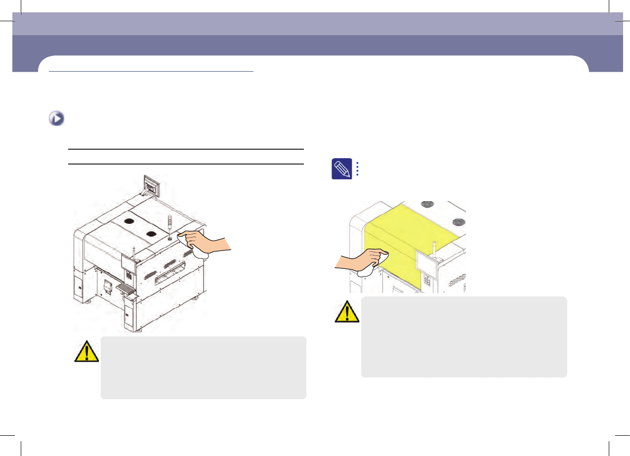 每月检验 Chap ter 5 Nex t Generation, Multi - Functi onal Placer DE CAN S 1 M ain te na nc e Ha n db oo k 5 -2 1 清扫护盖(Cover) 为了清除盖子的异物或污迹而清扫盖子。 维护工 具 干净布、酒精、 Heavy Duty Staticide # 2005 、# 2001 注 意 使用酒精或乙醇擦拭设备护盖时、必须注意避免酒精或乙醇…