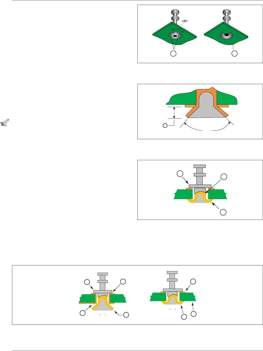 5.3.4 接线柱安装 – 机械 未与印 制电 路 或接 地 层连接的接线柱 应当 [N1D2D3] 采 用 卷 式翻 边结构( 见 图 5–3 ) 。印 制金属 箔 连接 盘 不应当 [N1D2D3] 作 为 卷 式翻边的支 座 面 , 除非 该 连接 盘是 孤 立 的 ,且未与有 源 印 制电 路 或接 地 层 相 连 。 5.3.5 接线柱安装 – 电⽓ 如 果 接线柱的安装 是与 喇叭面上的焊 盘 或接 地 层连接 ,如图 5–…