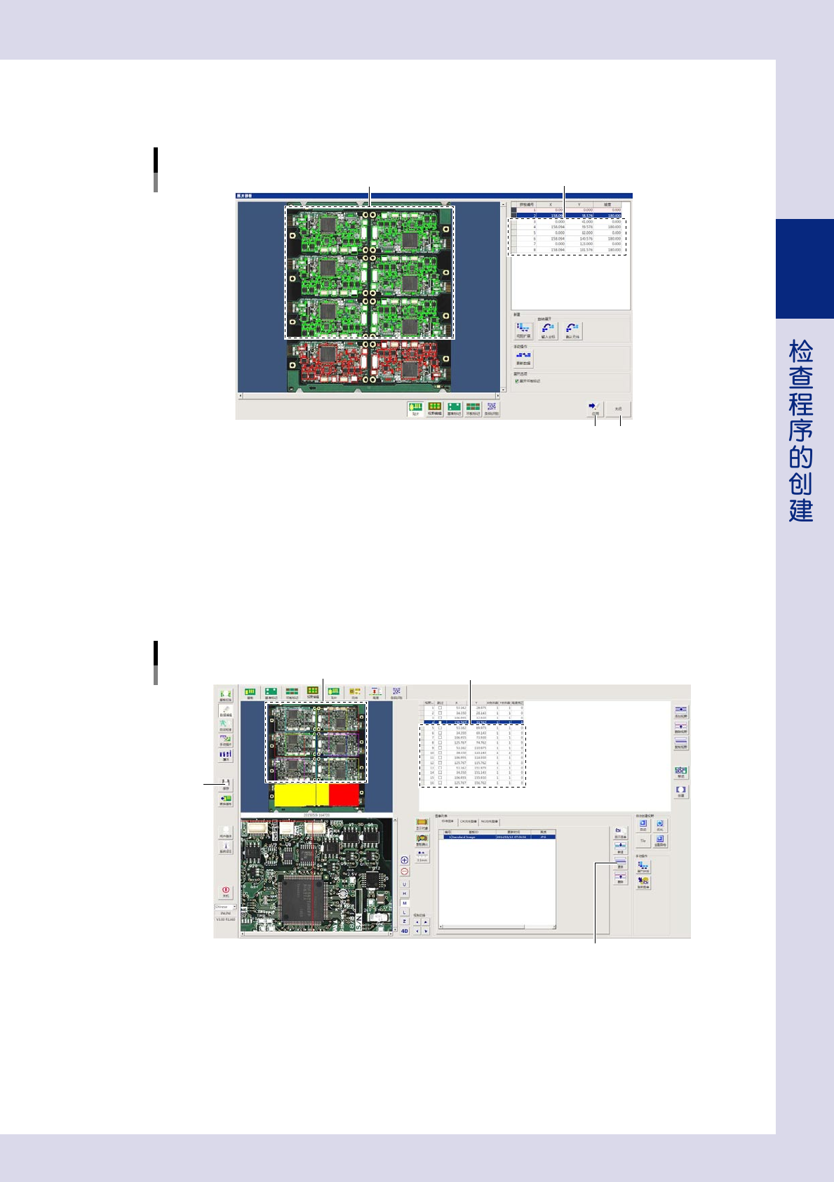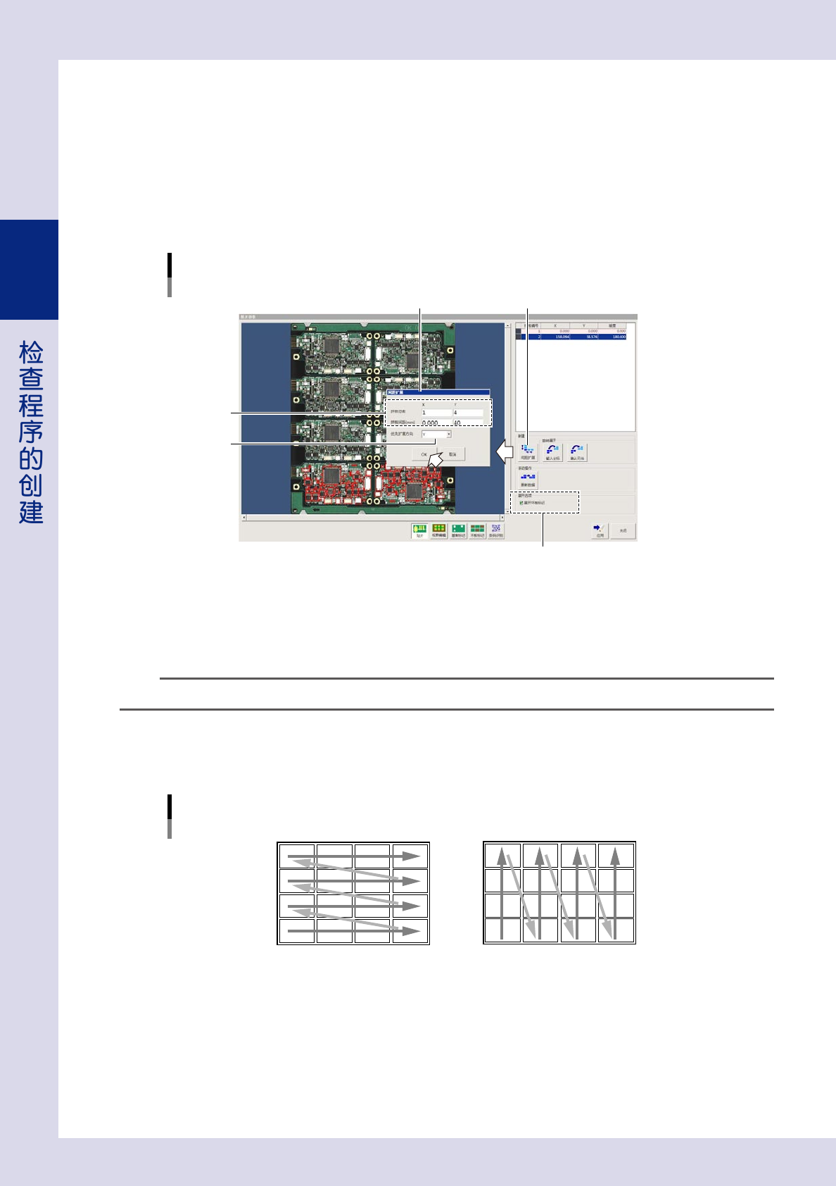 2-43 2 7 按 [OK] 按钮,开始扩展。 被复制的拼板贴片信息显示在基板整板图像上,拼板信息被添加到拼板信息列表中。 扩展之后的画面 被复制的贴片信息 被添加的拼板信息 26262-P7-00 8 将扩展的数据保存到基板程序中。 1. 按“展开拼板”画面的 [ 应用 ] 按钮。 2. 显示确认对话框之后,按 [ 是 ] 按钮。扩展的拼板数据被保存到检查程序中。 9 确认保存的数据。 1. 按“展开拼板”画面的 [ 关闭 …