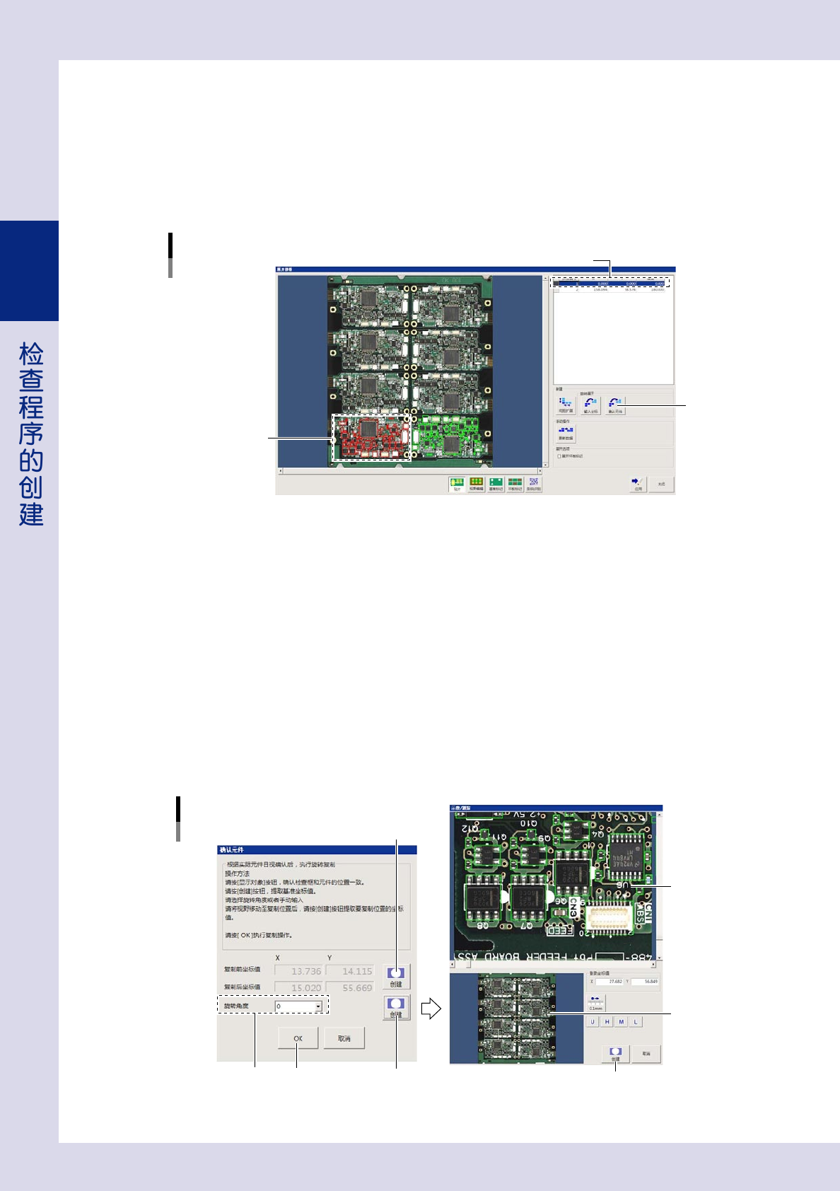 下面,以将 1 号拼板复制到 3 号拼板为例介绍旋转展开中的确认元件功能。
