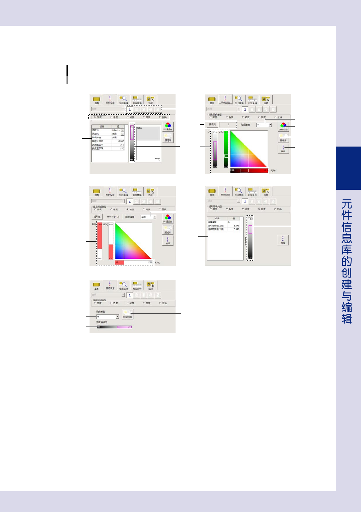 8. [ 照明库 ] 按钮 ( 亮度、色度、坡度 )