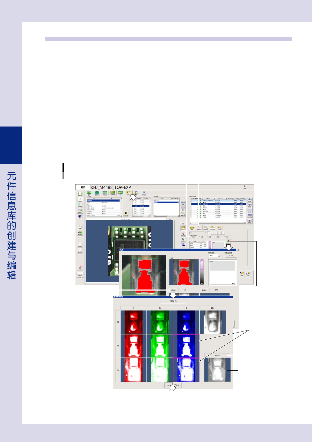 提取光是检查时使用的照明。选择提取光的方法如下 :