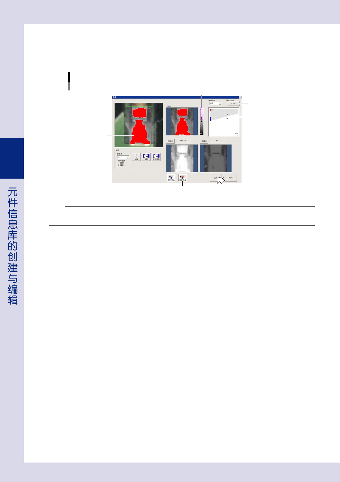 5. 按 [ 提取图像 ] 按钮,确认左上方的图像中被提取的部分 ( 红色 )。右上角的图中以灰色显示的部分,