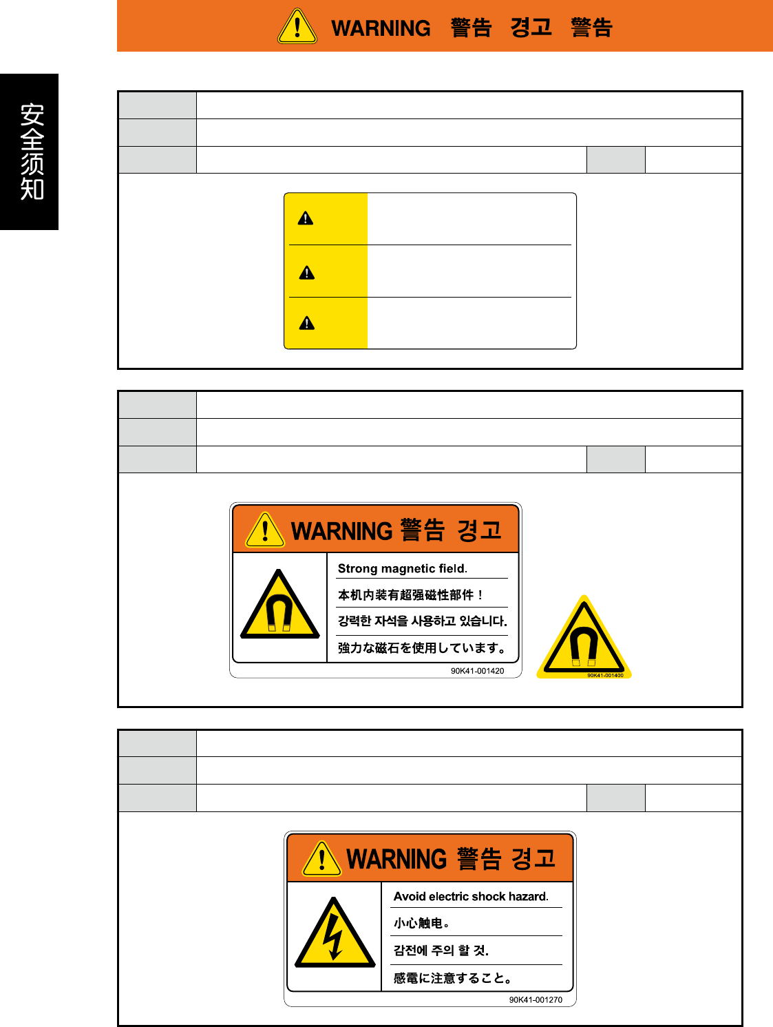 安全防范 务必充分理解有关强磁场的注意事项。