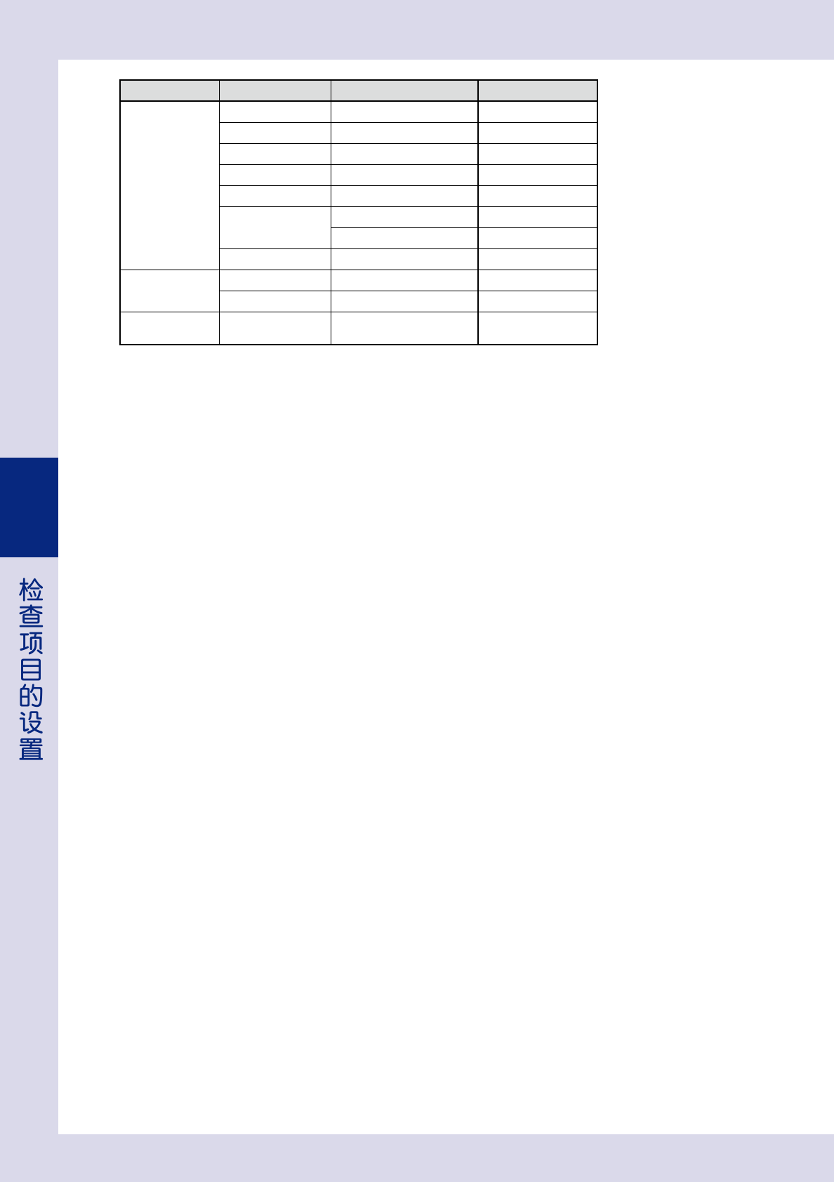 各检查部位的检查项目与检出方法如下表所示。请根据检查目的选定检查项目与检出方法并进行设置。关于详细