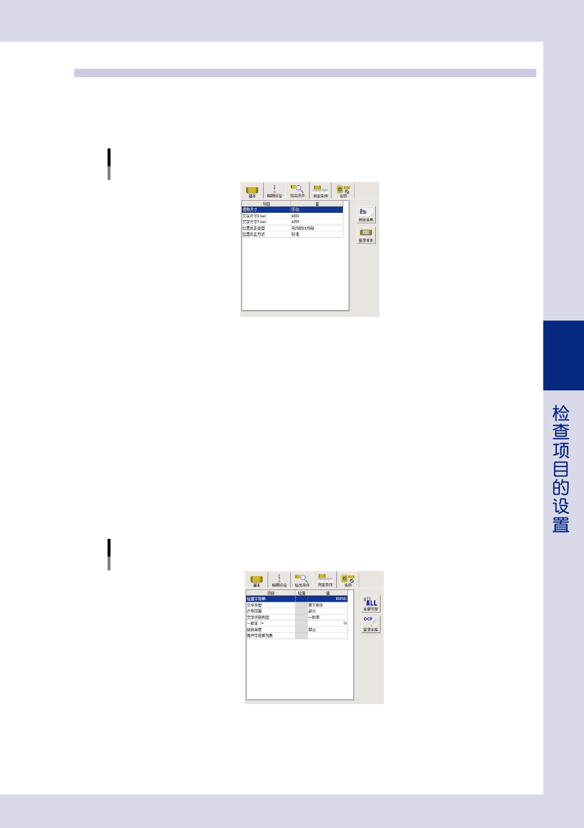 部分 :识别到的字符串中含有“检查字符串”中所输入的字符串时,判定为 OK。