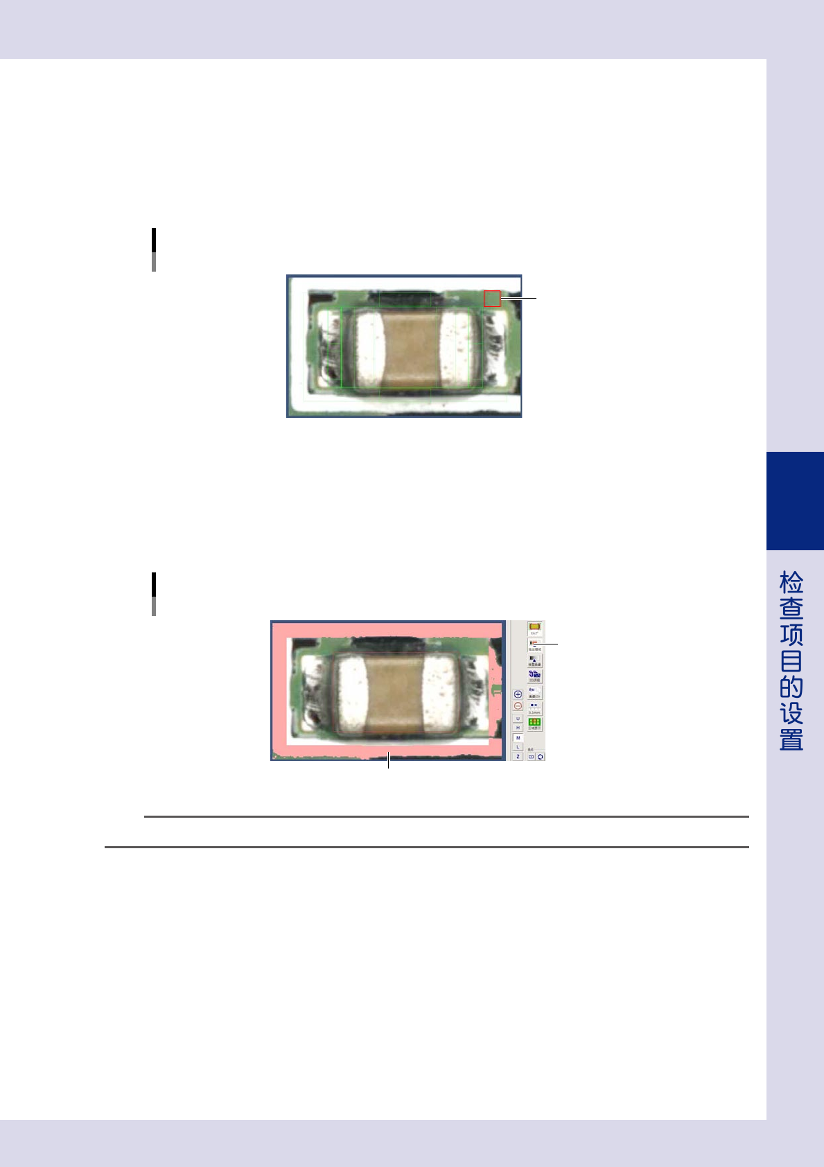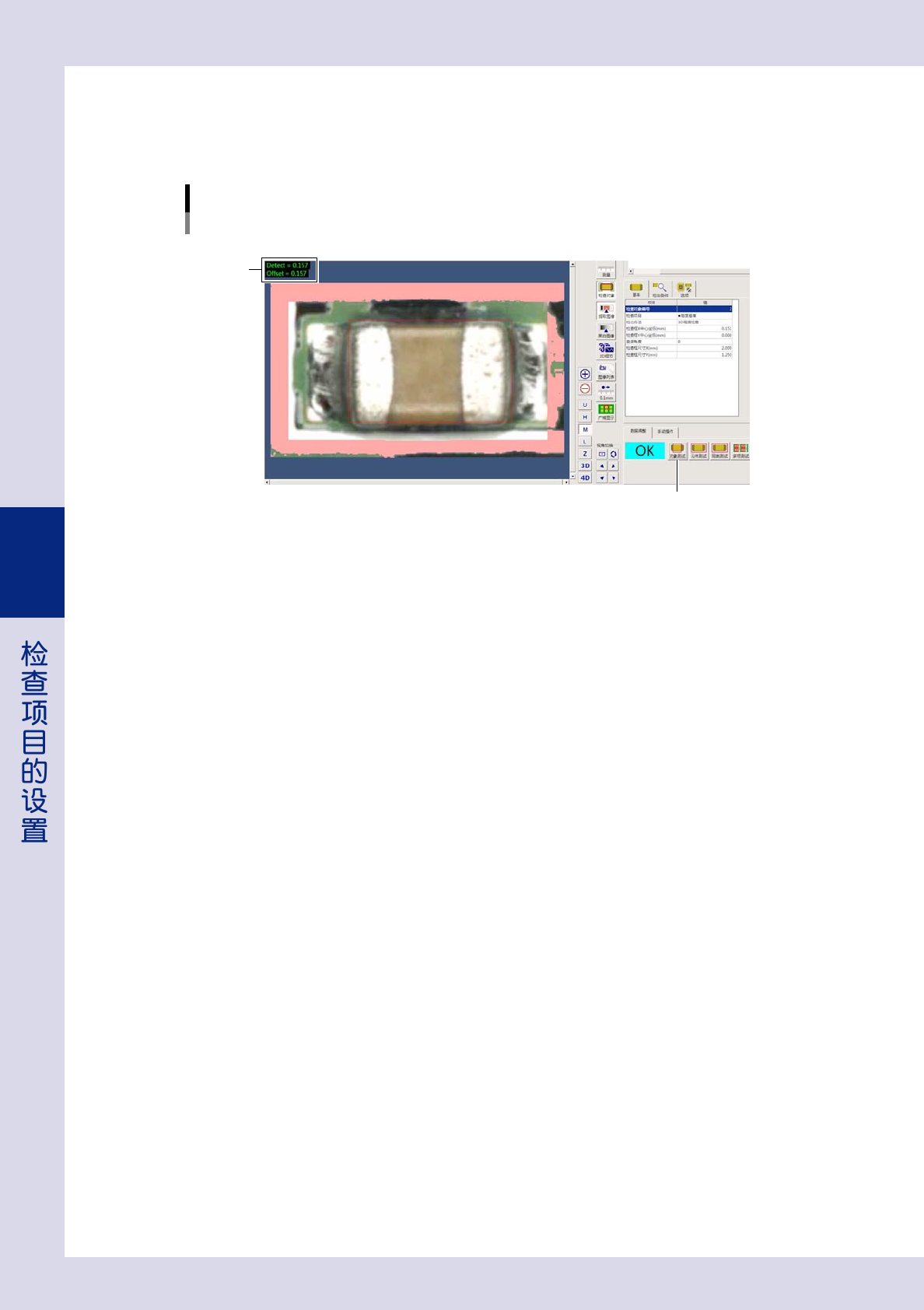 4-32 4 2 测定基准高度。 按“数据调整”选项卡中的 [ 对象测试 ] 按钮,测定高度。 如果无法正确测定高度时,需参考画面中显示的测定值修改各项参数的设定值或调整测定位置。 对象测试 检出方法:3D高度检查 测定值 [对象测试]按钮 <高度基准> 26440-P7-10