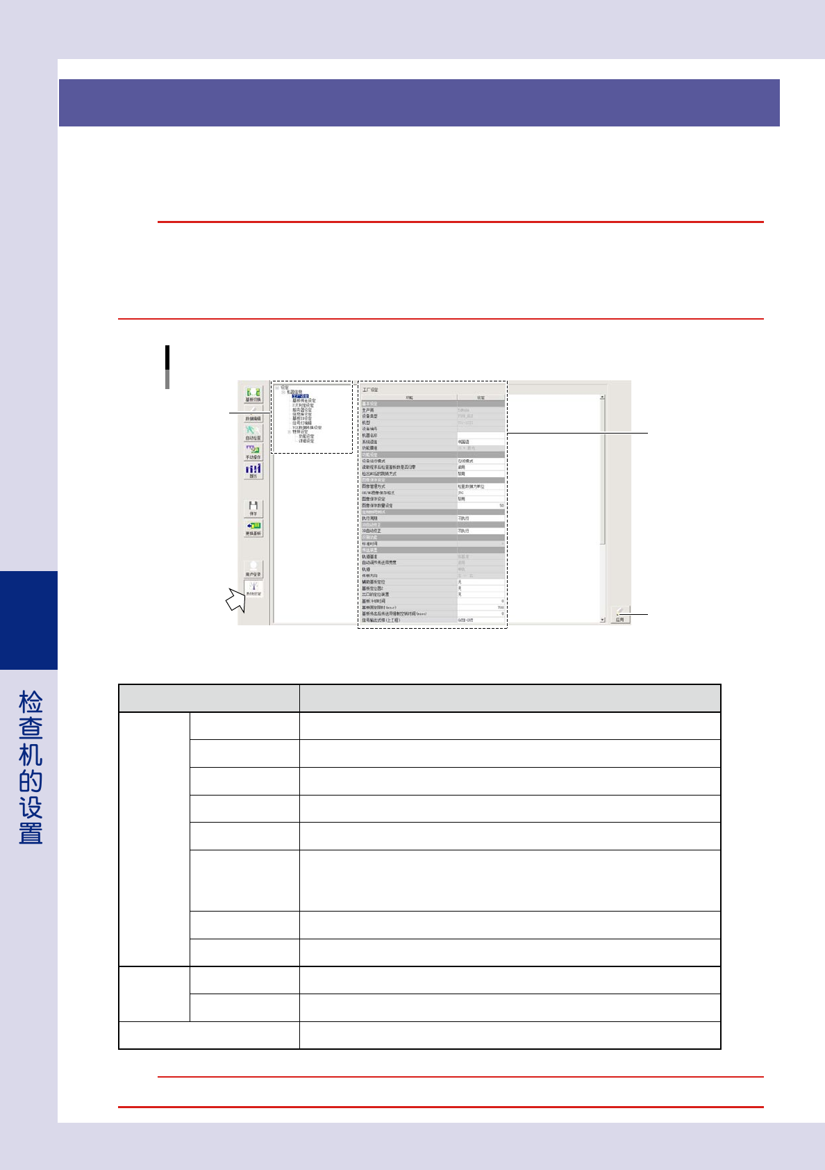按按钮区的 [ 系统设定 ] 按钮,可以对检查机的各种功能进行初始设置与详细设置。此处,主要介绍系统设定画面