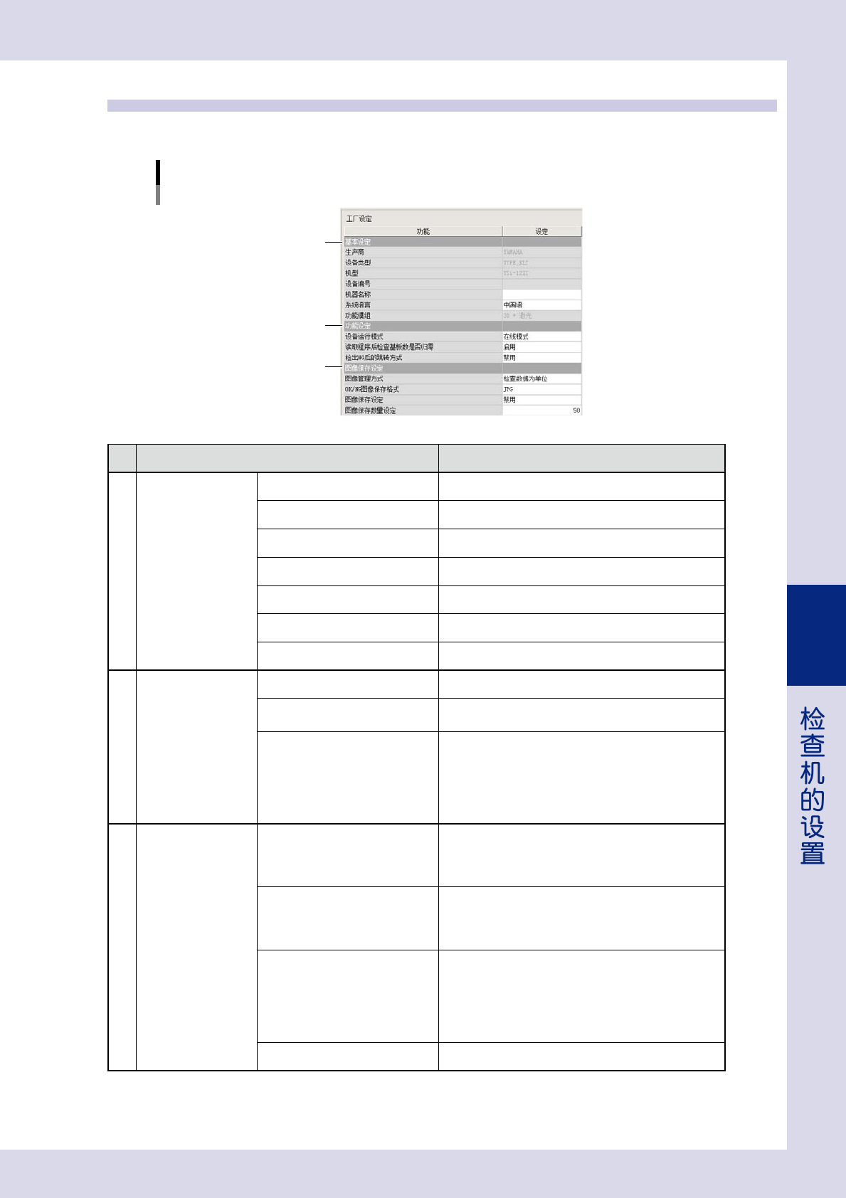 下面,介绍检查机的工厂设定项目。