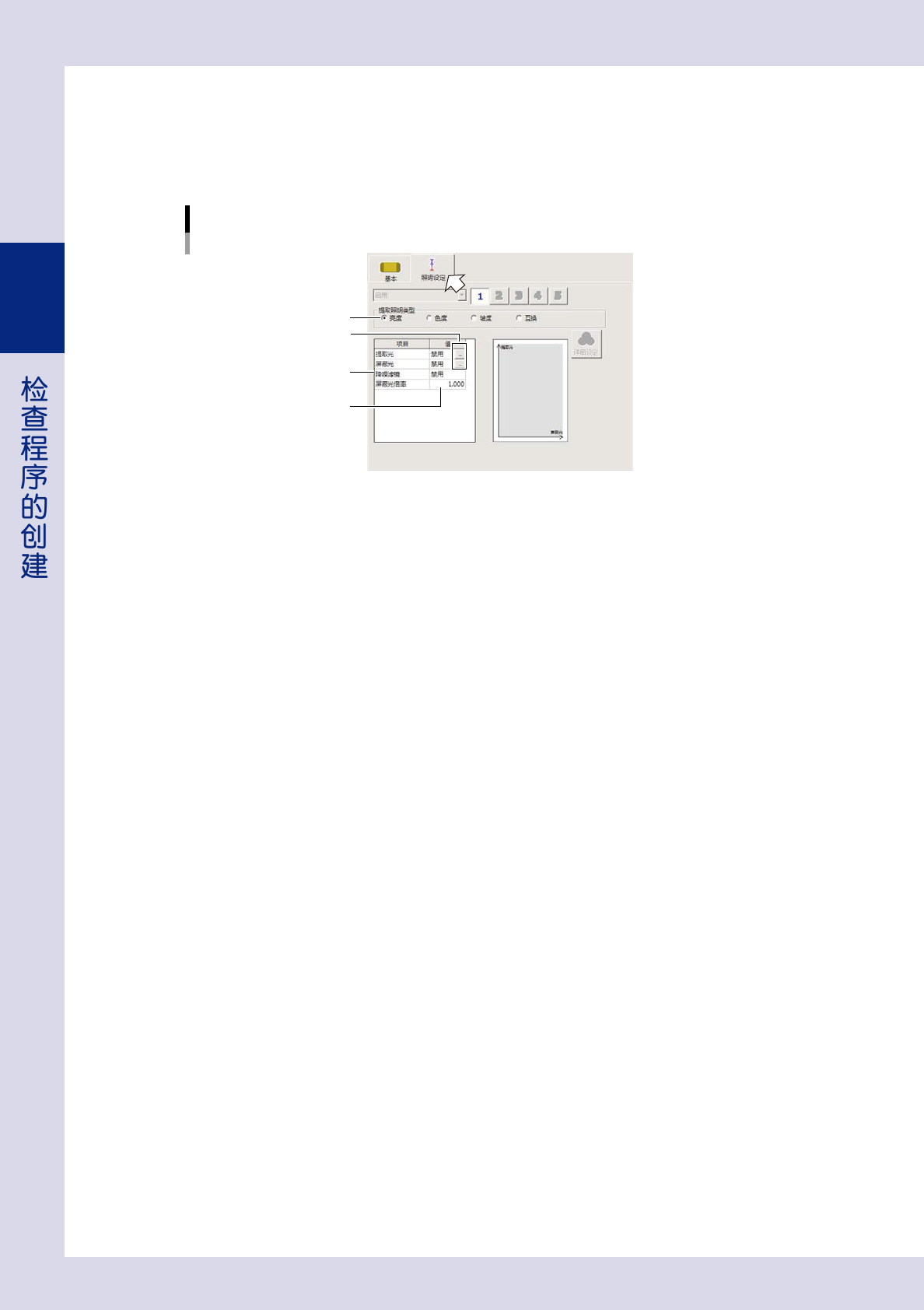 为识别坏板标记,还需设置“照明设定”参数。在此,以“亮度”为例介绍设置“照明设定”参数的方法。