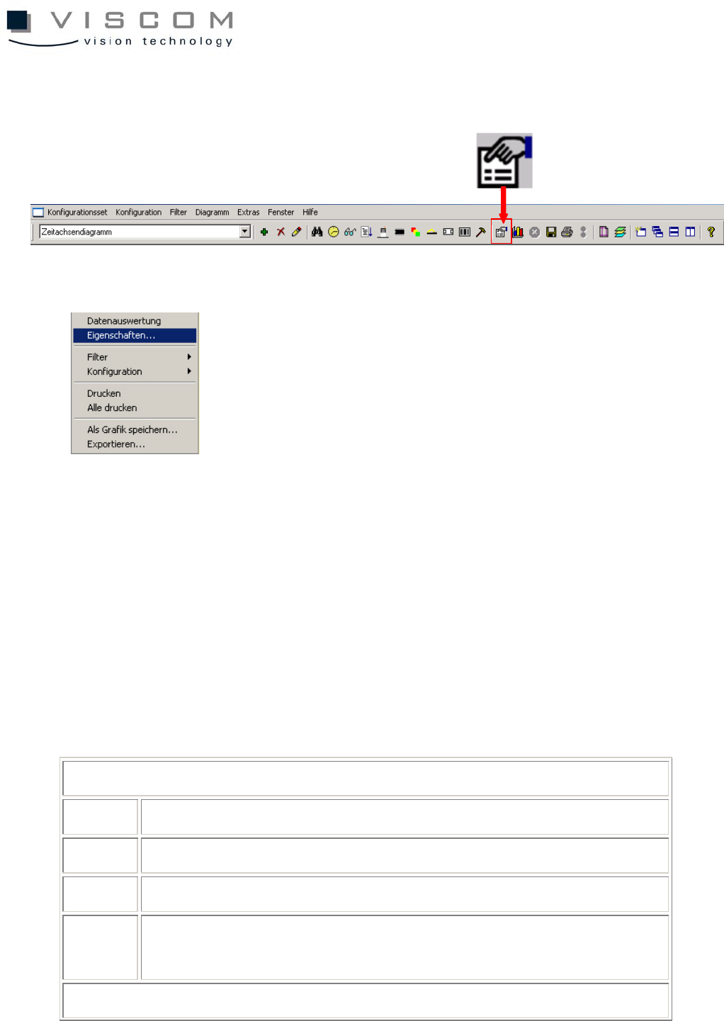 The diagram properties can be called up at any time by using the icon in the