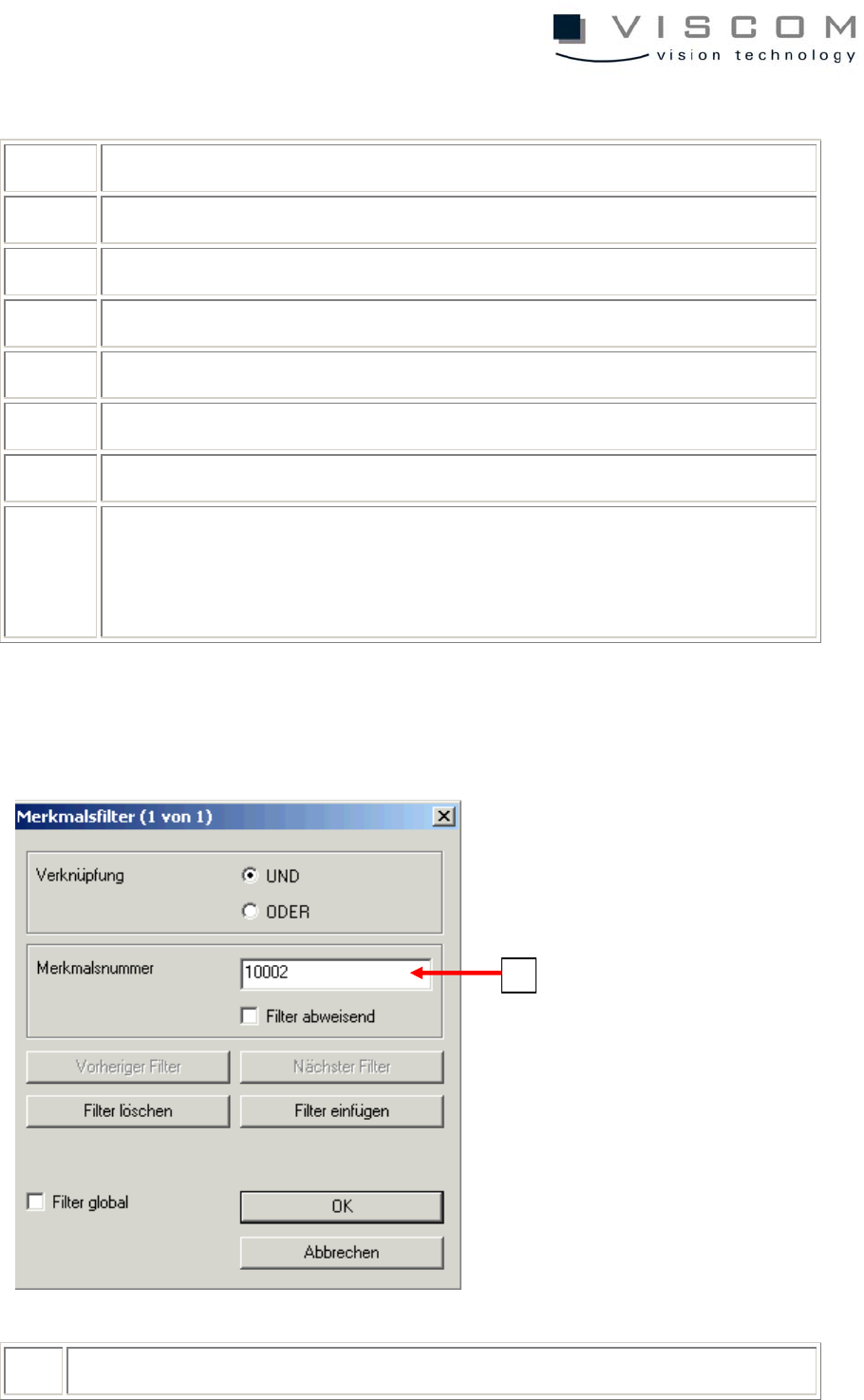reject filter active = the selected feature number will be ignored