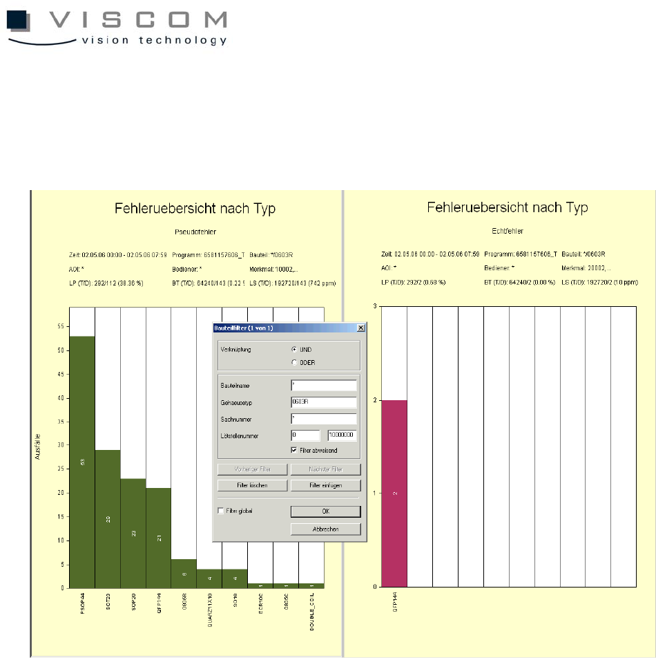 example, the defect overview for component form in the bar 0603R. If a data