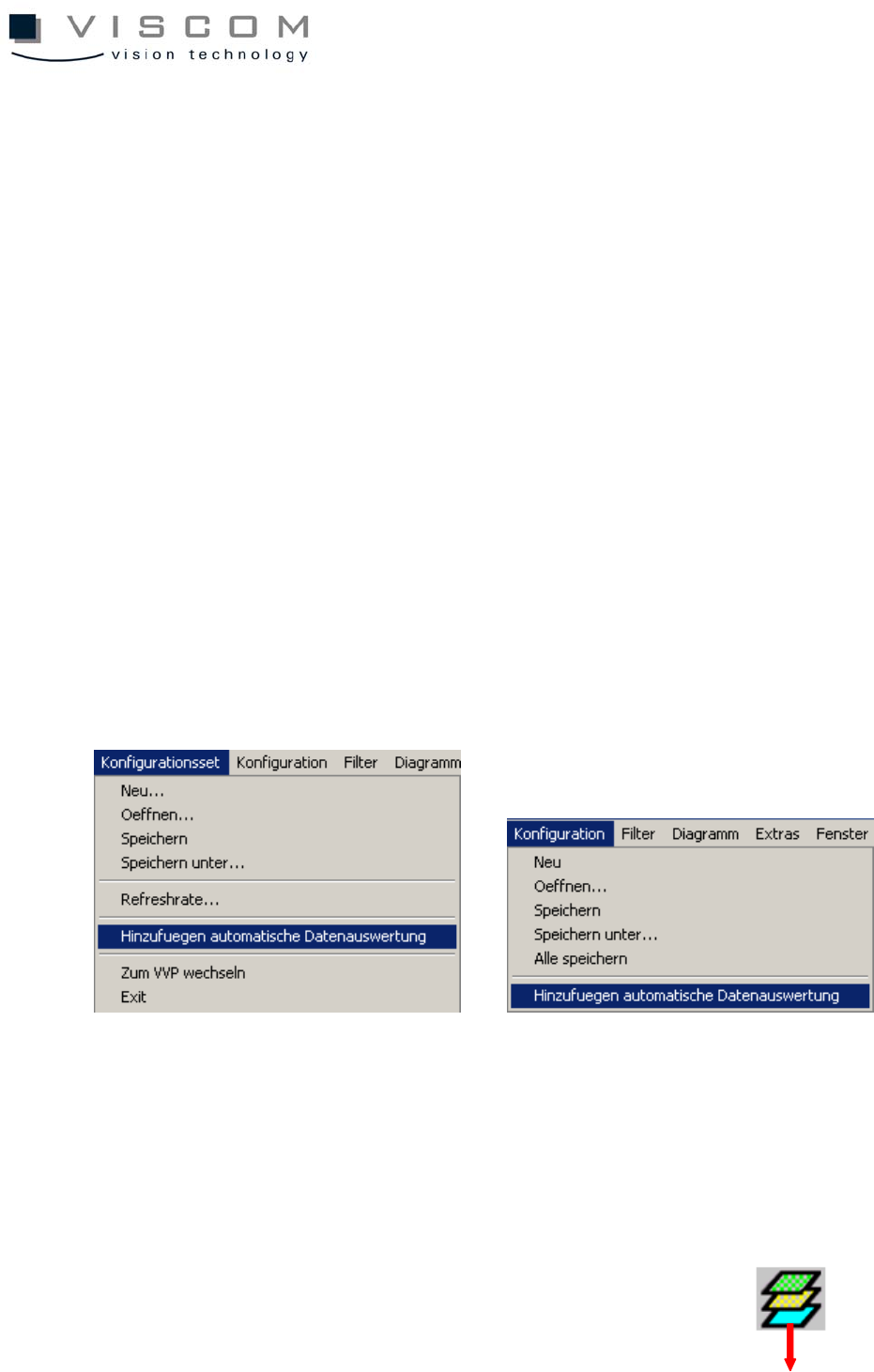 The menu point "Extras - Automatic data evaluation" displays the configuration