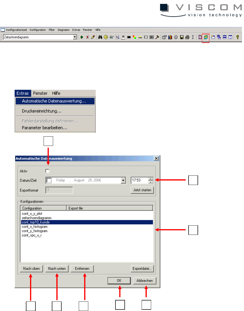 85/144 The menu point "Extras - Automatic data evaluation" displays the configuration dialog illustrated her e, which offers the following options. 1 2 3 4 5 6 8 7