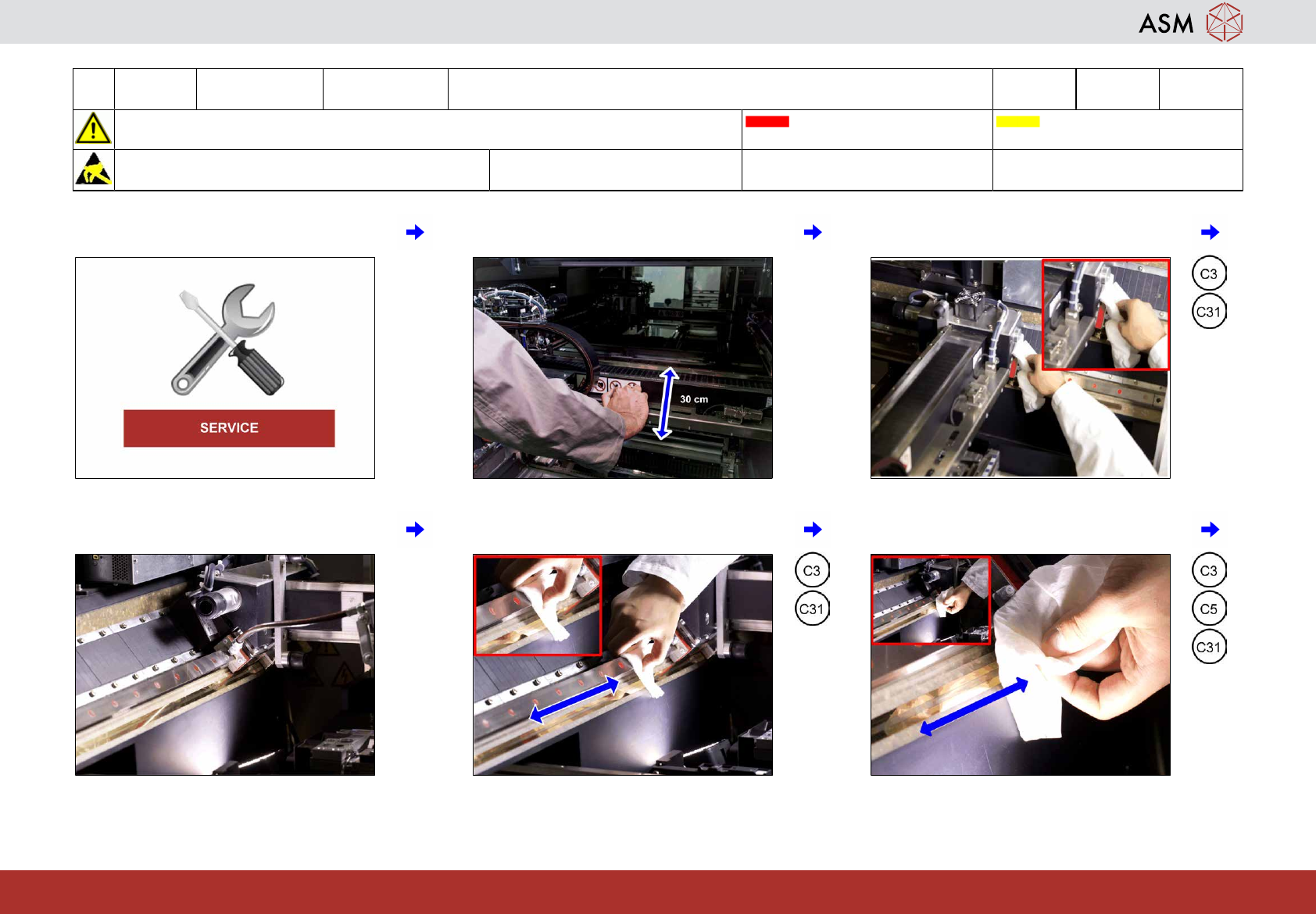 7 If YES inform service. 8 Move Y-Axis 30cm back and forth. 9 Remove the excess grease around the
