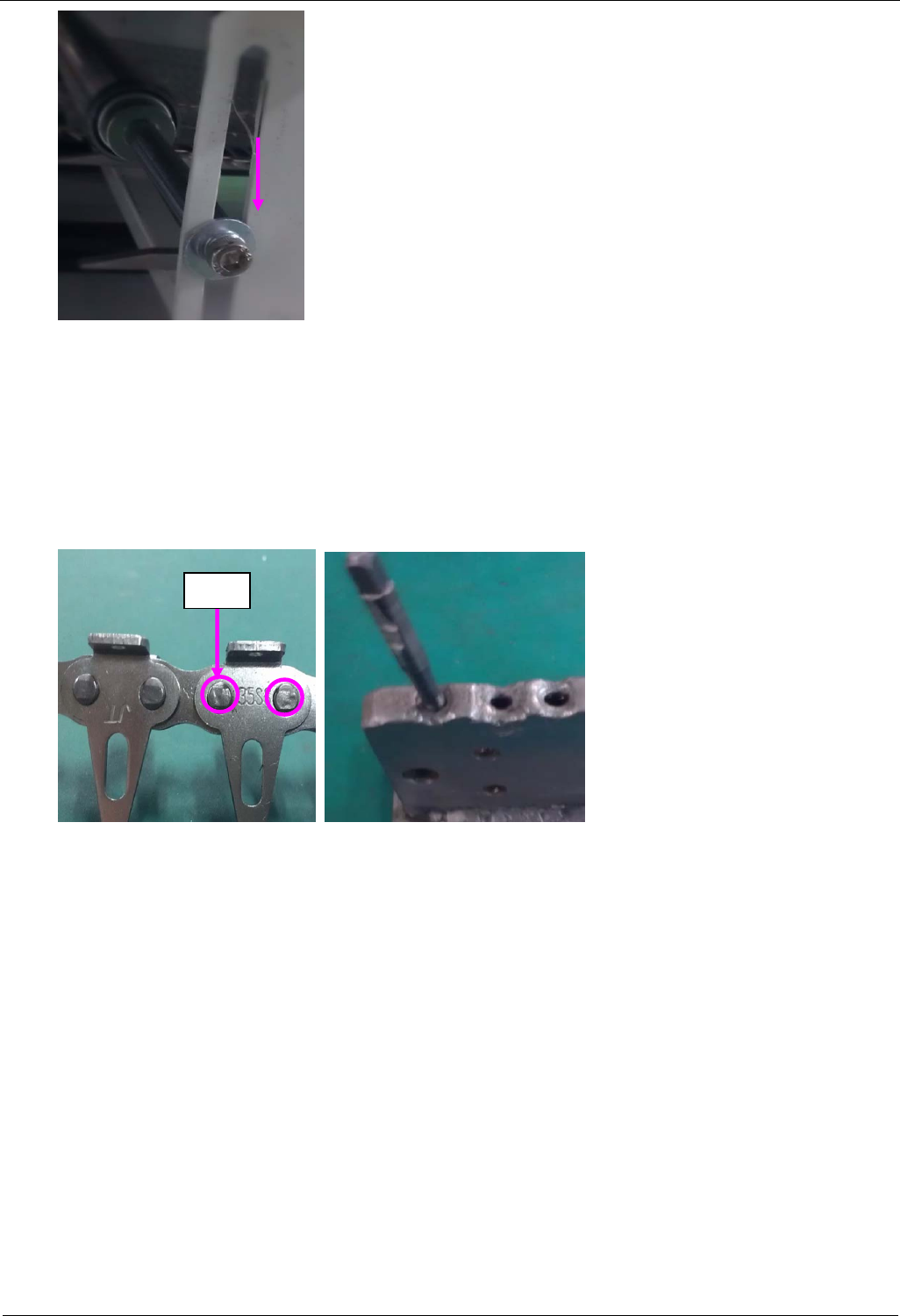 2)点检部位如下图所示,要求中支链条齿尖与运输链条销轴之间的间隙控制在 1±0.5mm(要求中支导轨距