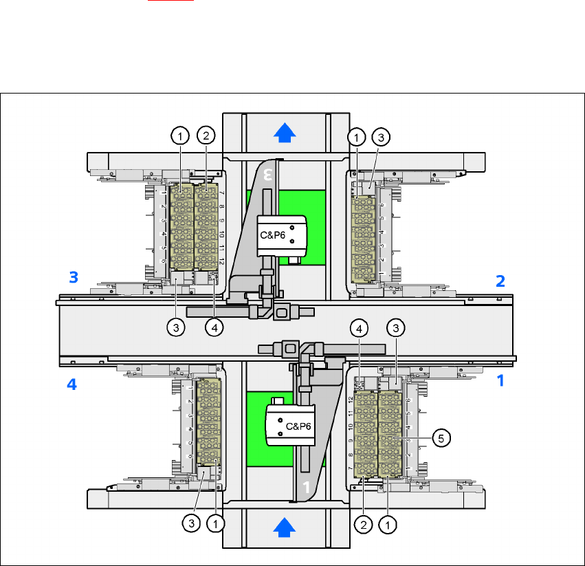 7.1.2.2 Position af pipettevekslerne for C&P6-hoved på HF-automaten