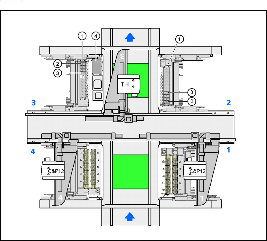 Fig. 7.1 - 18 Position af pipettevekslerne for TwinHead på HF-automaten