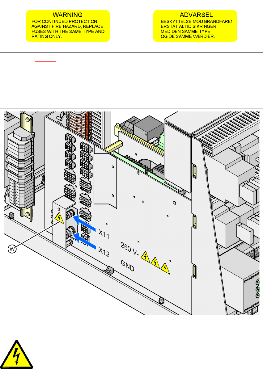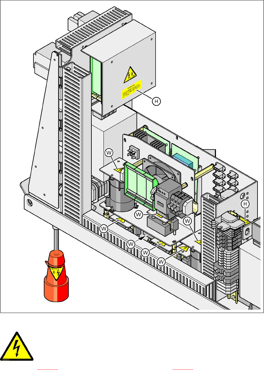 Fig. 2.2 - 10 Advarselsskilt W på afdækningskappen over strømforsyningen for servoforstærkeren