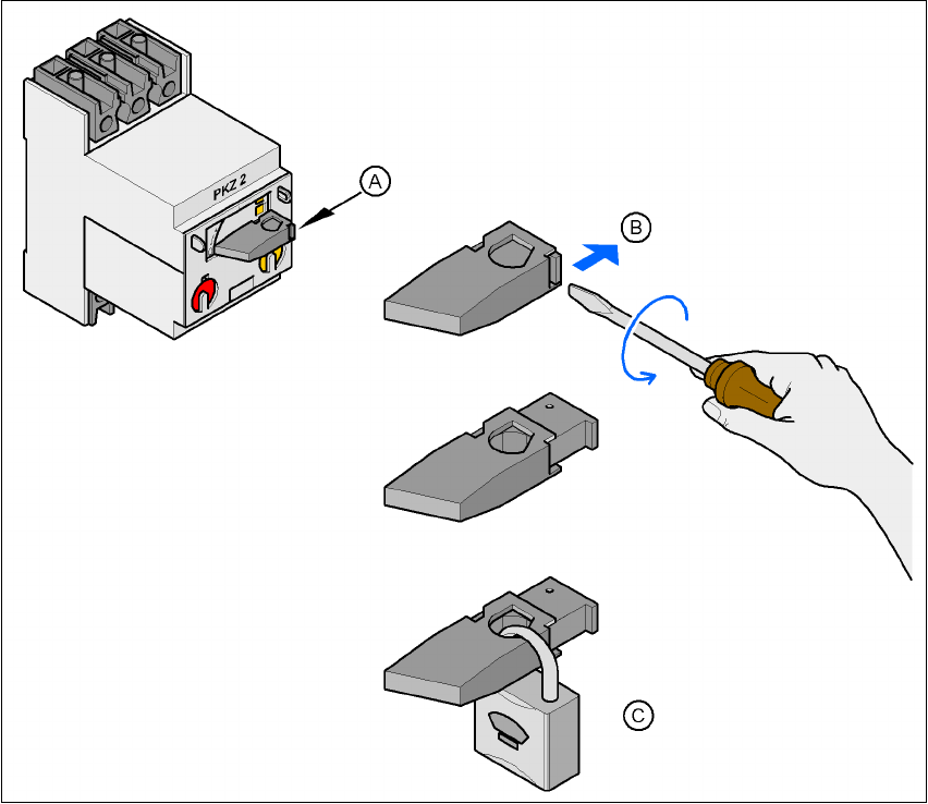 Fig. 2.10 - 2 Låsning af motorbeskyttelseskontakt