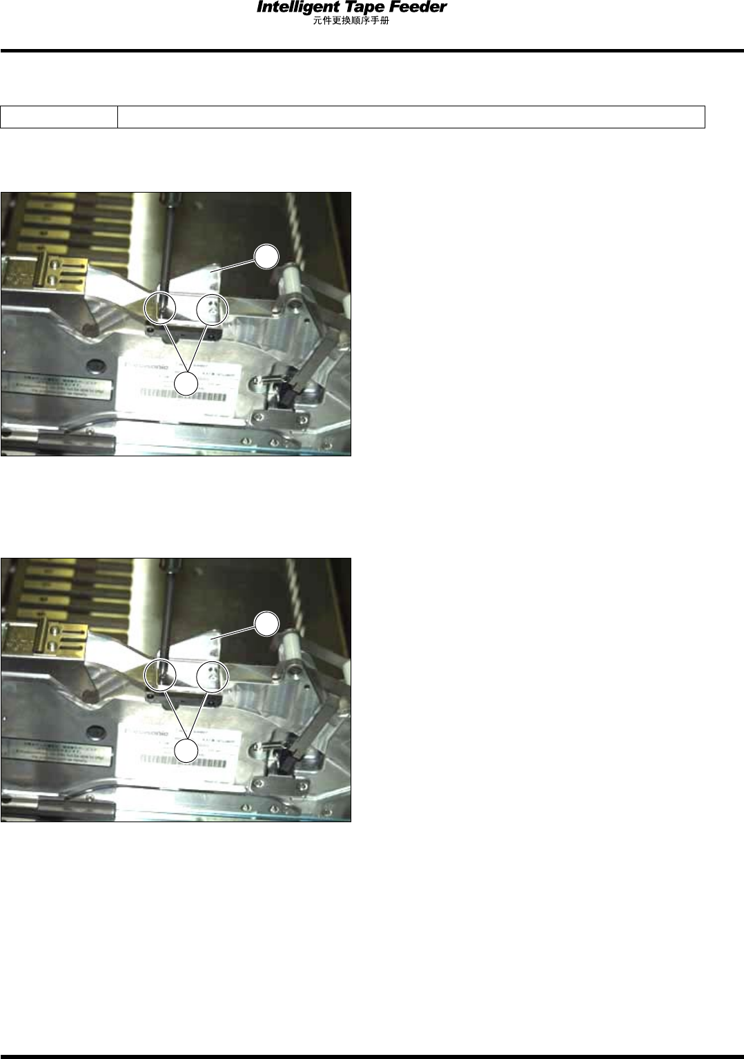 2.4 编带导轨 Page 2-11 安装 1. 安装好编带导轨 之后,关闭压紧编带盖 。 2. 紧固编带导轨的固定螺钉 (2 处 ) 。 拧紧扭矩 40 N cm ( ± 5 N cm) ∗ 通常在压紧编带盖 关闭后进行作业,但根据 供料器宽度 , 也有 在打开的状态 下作业 的情况。 I NT F-215P 1 2 I NT F-086E I NT F-214P 1 2 INT F-C-P EA02-A0…