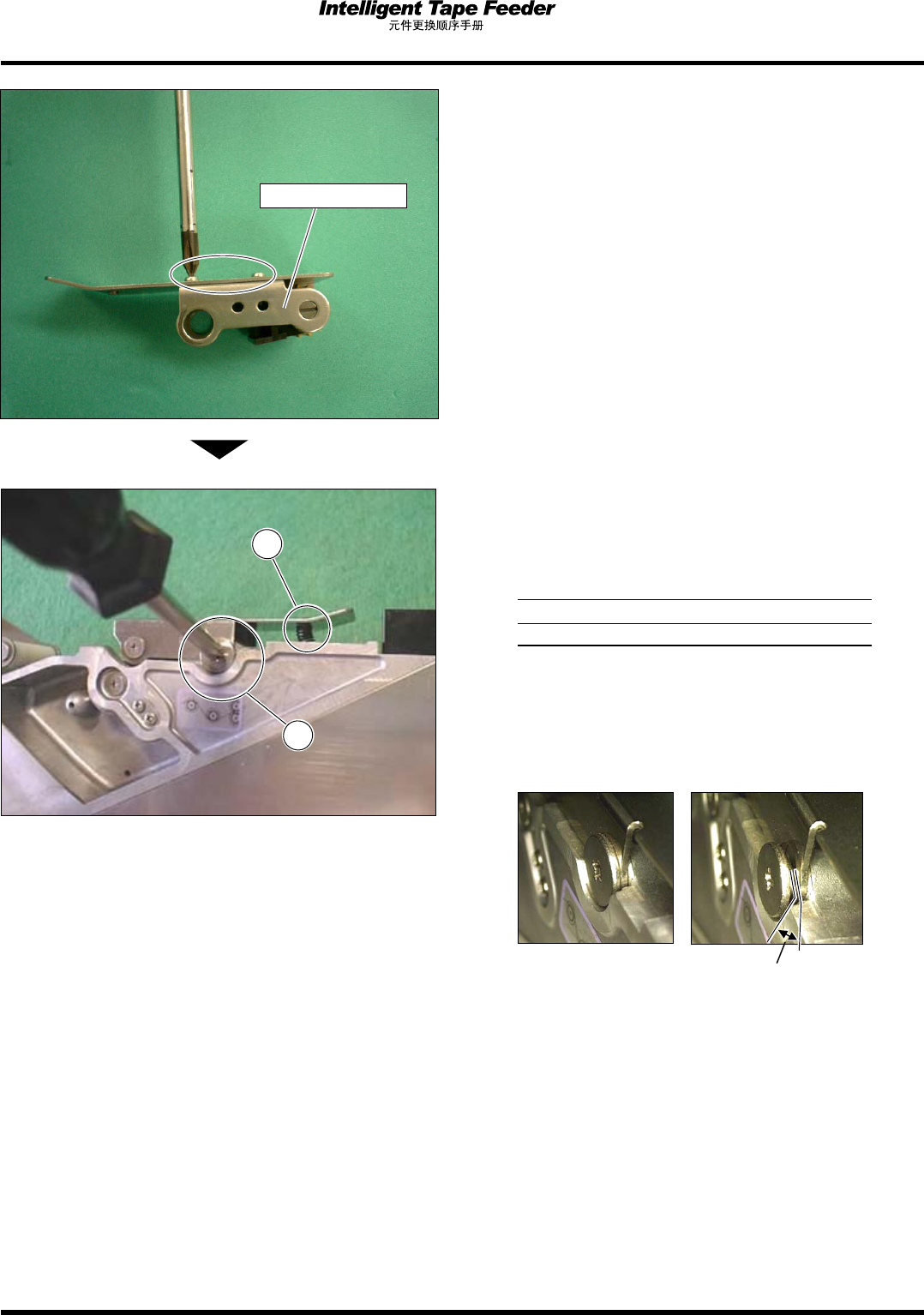 2.8 上侧导齿轮 Page 2-28 5. 安装好压紧齿轮盖之后,用固定螺钉 (2 处 ) 固定。 L 侧 6. 用固定螺钉 暂时拧紧导杆。 7. 安装好弹簧 之后, 将固定螺钉正式拧紧。 拧紧扭矩 100 N cm ( ± 10 N cm) ∗ L 侧 /R 侧两侧的间隙都要紧固 ( 如照片 a) 。 紧固状态如照片 b 时,导杆的动作将会变得不 顺畅。 ( 好的例子 ) ( 不好的例子 ) 照片 a 照片 b I …
