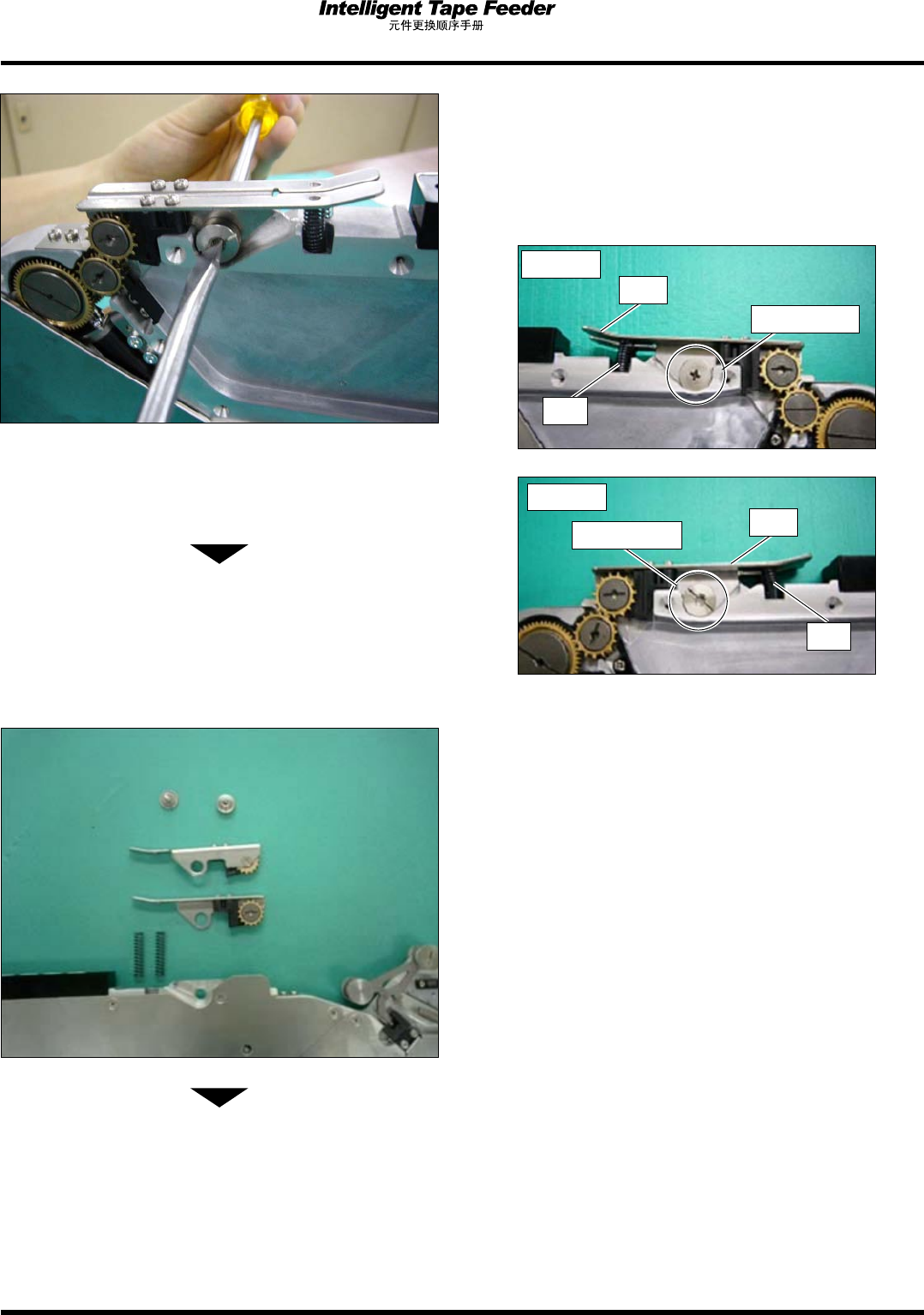 1.8 下侧导齿轮 Page 1-26 2. 在 L 侧用一字螺丝刀, 在 R 侧用十字螺丝 刀拆卸固定螺钉。 ∗ 螺钉是紧固在一起的。 ∗ 拆卸固定螺钉时,请注意不要使弹簧弹出。 3. 拆卸导杆和弹簧。 下一页 I NT F-171P R 侧 固定螺钉 弹簧 导杆 I NT F-172P L 侧 固定螺钉 导杆 弹簧 I NT F-173P INT F-C-P EA01-A03-00