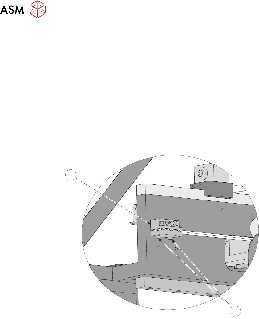 ► Locate the rear print carriage timing belt clamp (2) on the inner face of the right hand print-