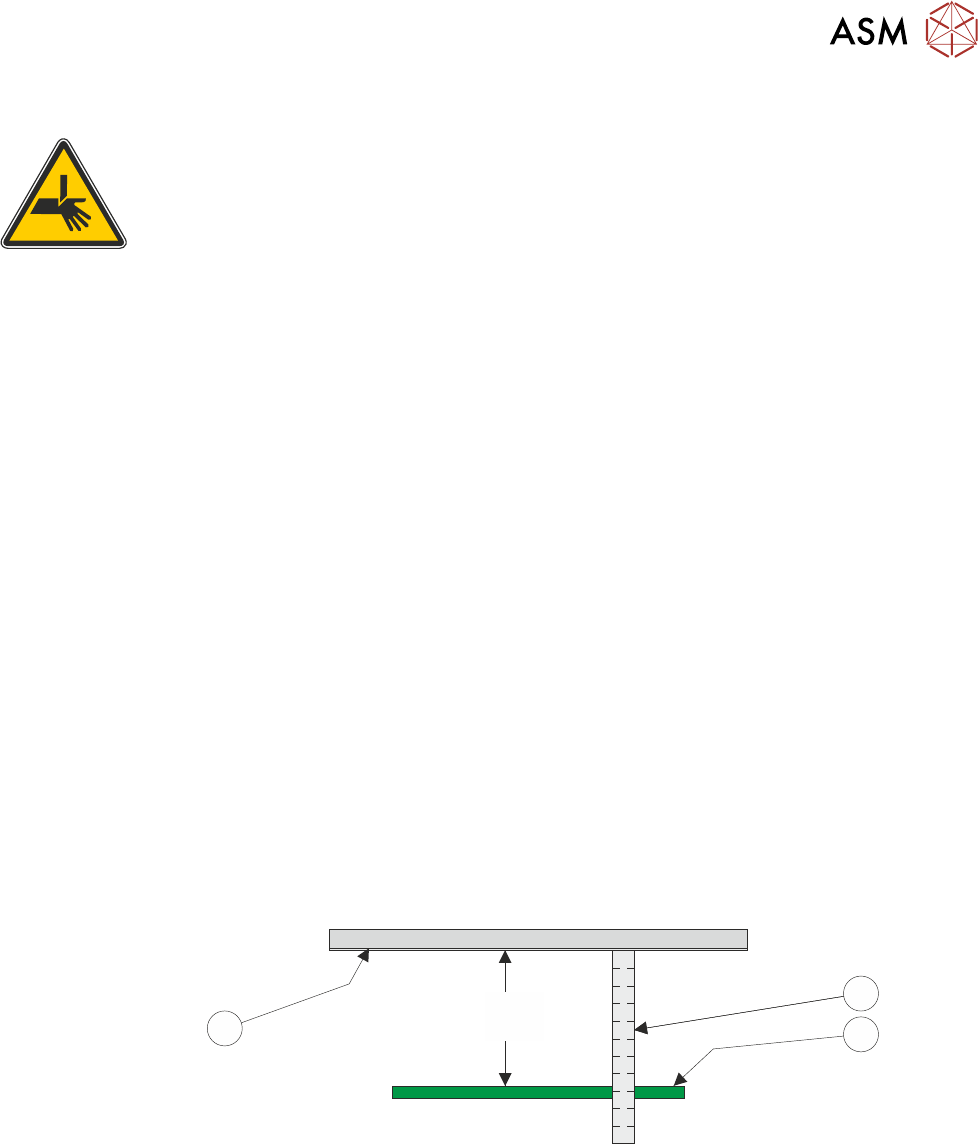 BOARD CLAMPS. EXTREME CARE MUST BE EXERCISED WHEN WORKING IN