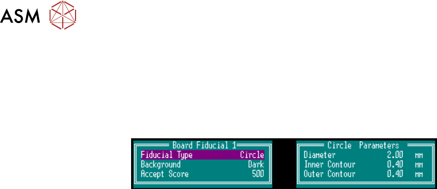 buttons set up Fiducial 1 position in X or Y, and for a Circle: