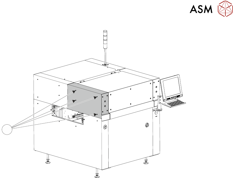 4 COVERS 4.1 PRINTER COVERS 44 TECHNICAL REFERENCE MANUAL Vol 1 E By DEK 04/2019 4.1.1.9 Lower Side Panels To remove the lower side panels, carry out the following: ► Remove the corresponding safety cover (as detailed pr…