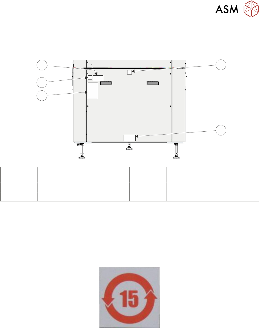4 COVERS 4.1 PRINTER COVERS 46 TECHNICAL REFERENCE MANUAL Vol 1 E By DEK 04/2019 4.1.2.3 Machine Conformity This label indicates the technical bodies that have given quality assurance approval. The label also gives the f…