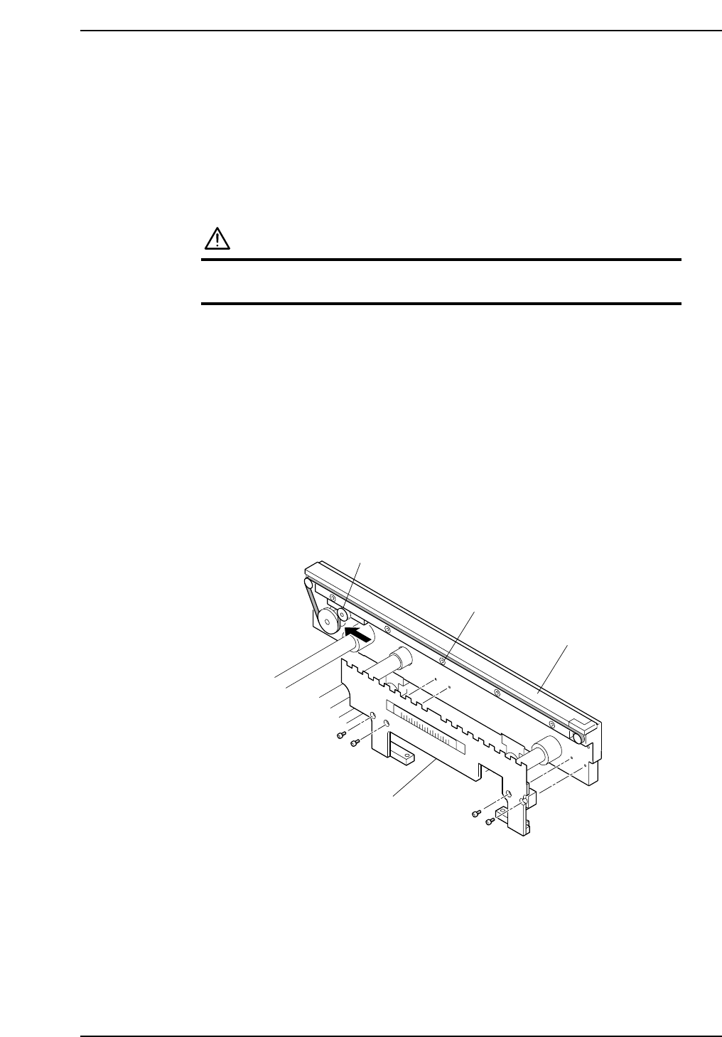 5. Insert a 0.3 mm clearance gauge between the belt’s top surface and the plate, then