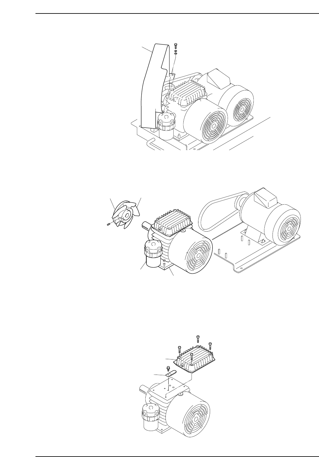 3. Open the belt cover. 4. Remove the pulley and the pulley fan, then remove the vacuum pump from the table. Caution: The air filter should not be removed from the vacuum pump for the folllowing reasons. 1. There is a po…