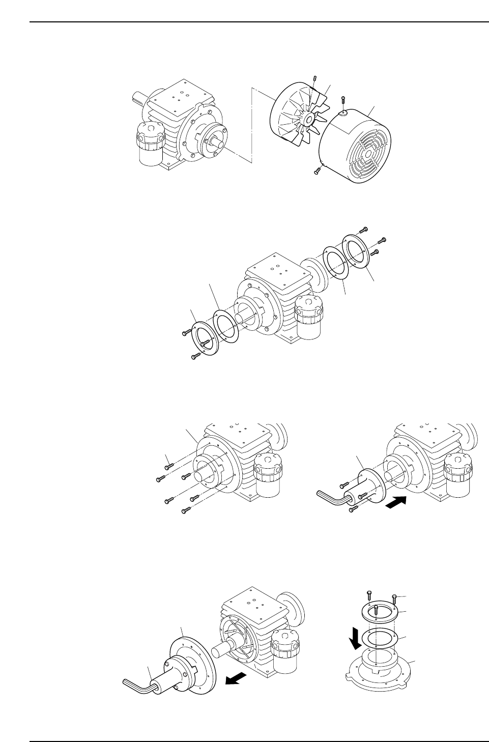 4. Remove the pulley and the pulley fan, then remove the vacuum pump from the