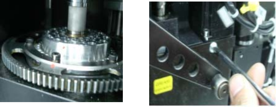 15、“ZH”调整:量表架在 FEEDER 供料平台上,表头与最高的一支 PISTON 下方接触,用手下压“Z”轴,