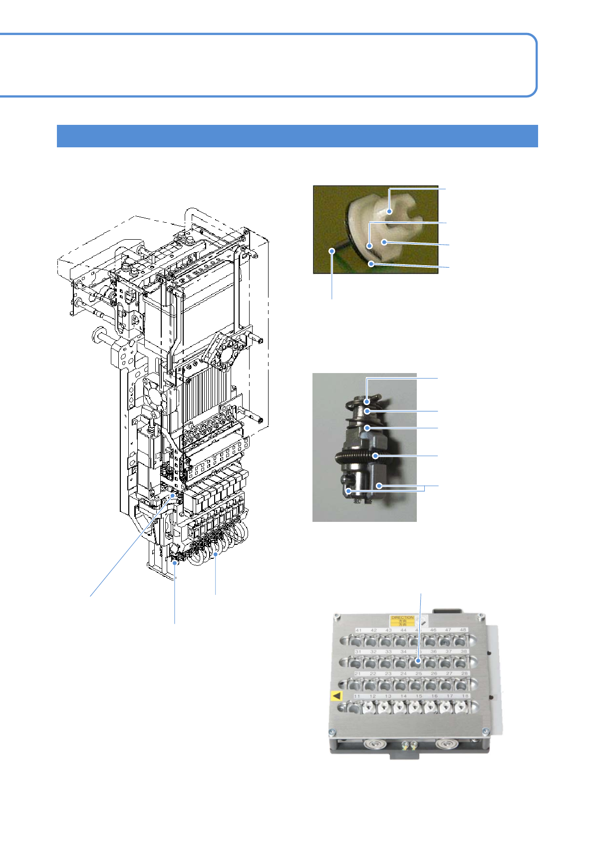 EJM80DC-MB-03E -00 NPM-DX 3-6 -9 工程师手册 3-6 轻量 8 吸嘴贴装头 ■ 轻量 8 吸嘴贴装头 ■ 吸嘴 ■ 吸嘴交换器 ノズル先端部 ■ 吸嘴座 ( 管子 ) 各单元定期检查部位 5 <贴装头> ( 选购件 ) 吸嘴反射板 吸嘴凸缘上面 (2D 代码部 ) 吸嘴锥形面 吸嘴内部 吸嘴尖端部 内外周 吸嘴缓冲用弹簧 夹具夹扣 夹具夹扣压紧用弹簧 吸嘴座滑动面 真空空气路径 Θ 轴皮带 拼接滑动面 吸…