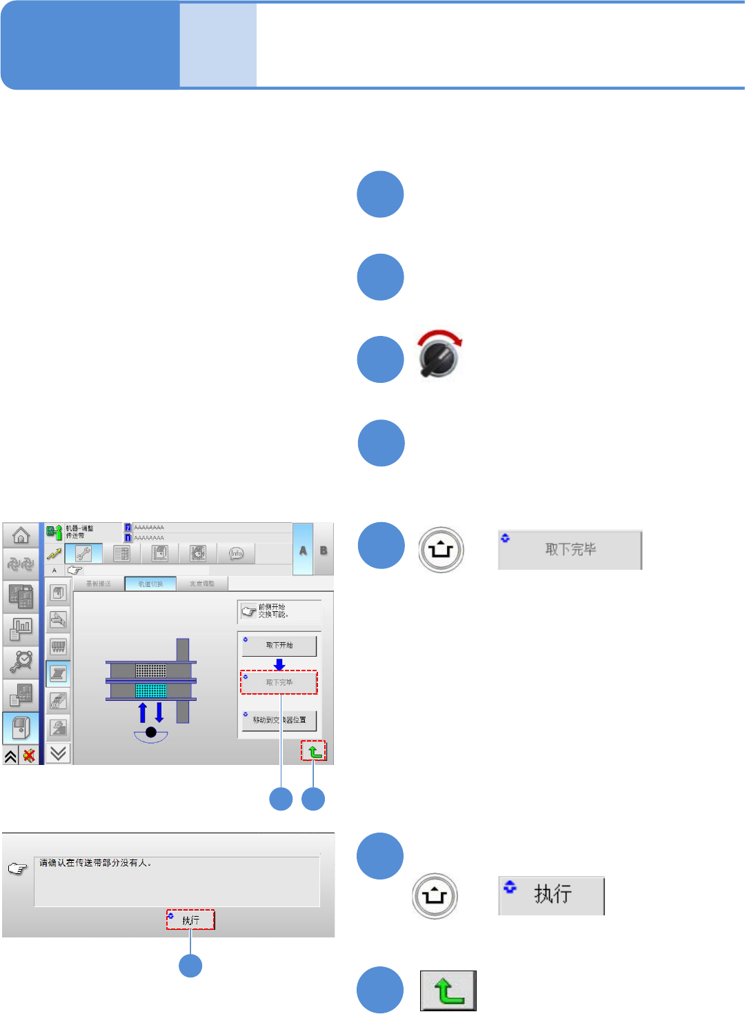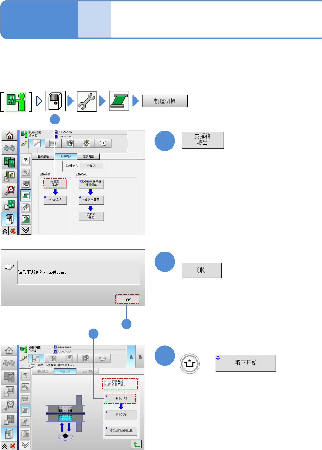●请按照下述步骤进行切换。在这里,对从双轨道模式切换到单轨道模式的方法进行说明。从单轨道模式切换