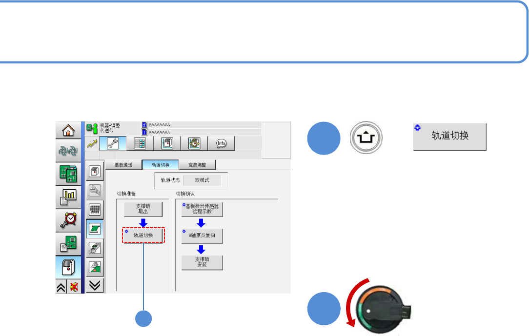 EJM8D C - MB - 09E - 00 NPM - DX 模式的 切换 切换到单轨模式 2 工程师手册 9 - 2 - 1 15 安装交换台车 ( → P.2 - 4) 13 关闭安全盖 14 12 安装供料器工作台盖 伺服开关 ON 16 16 + 17 17 + ( 基板支撑块转为下降 状态 ) 确认提示 9-2-1 -3 18 18