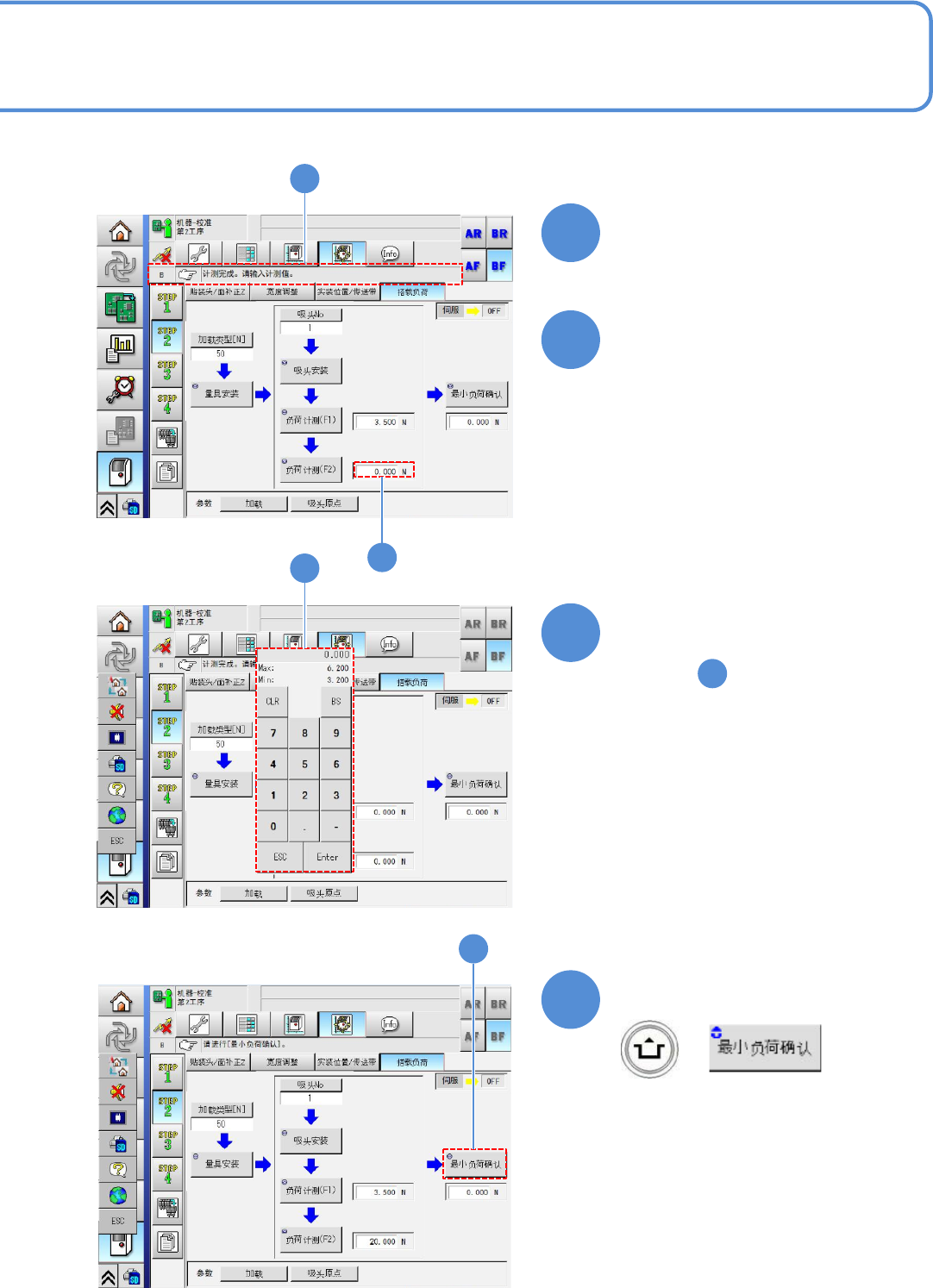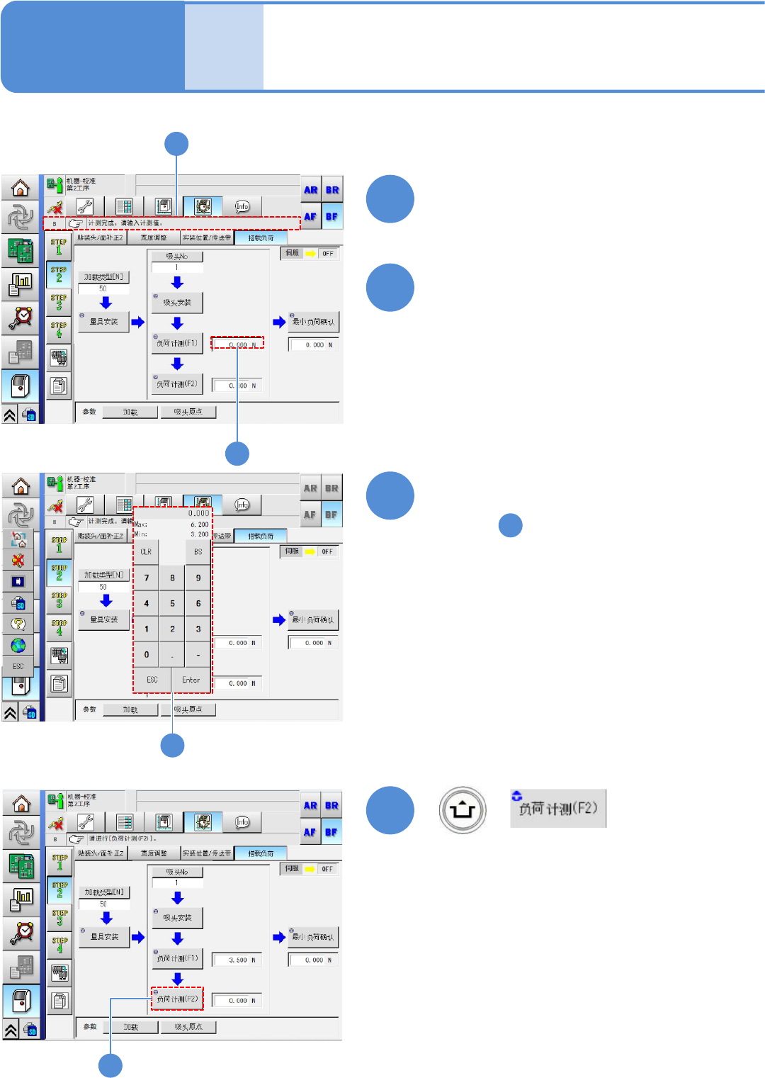 EJM8D C - MB - 10E - 00 NPM - DX 贴装负荷 10 -8-1 -5 贴装负荷 3 21 22 ● 输入在 读取的数值 。 输入范围 : 3.0 ~ 4.4 N 20 23 ●读取测定中的 稳定值。 关于负荷测定值, 由于吸嘴和治具 接 触的瞬间数值会 增大,无法获 取正确 的测定值。因此 ,不显示最大 值而是 使用标准值进行 测定。 24 + ●负荷测量仪表 的切换方法 ( → 『 工程师手册 』 P.10…