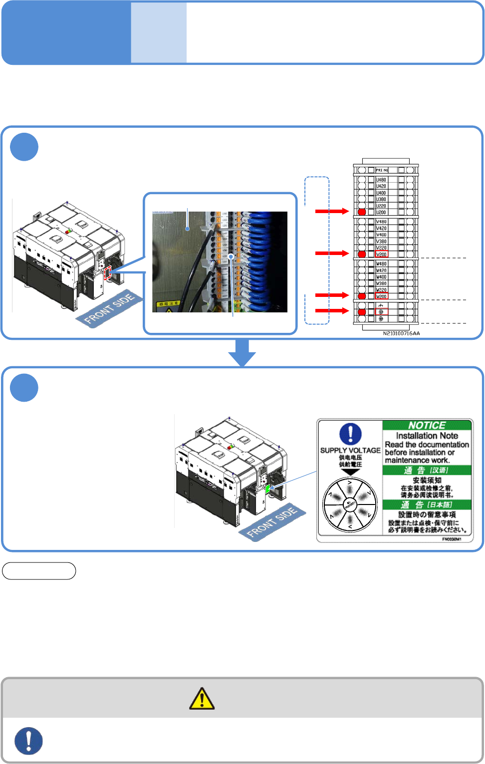●切换初级电源的分支时,请确认工厂的初级电源电压是否与插座切换电压一致。否则会造成主变压