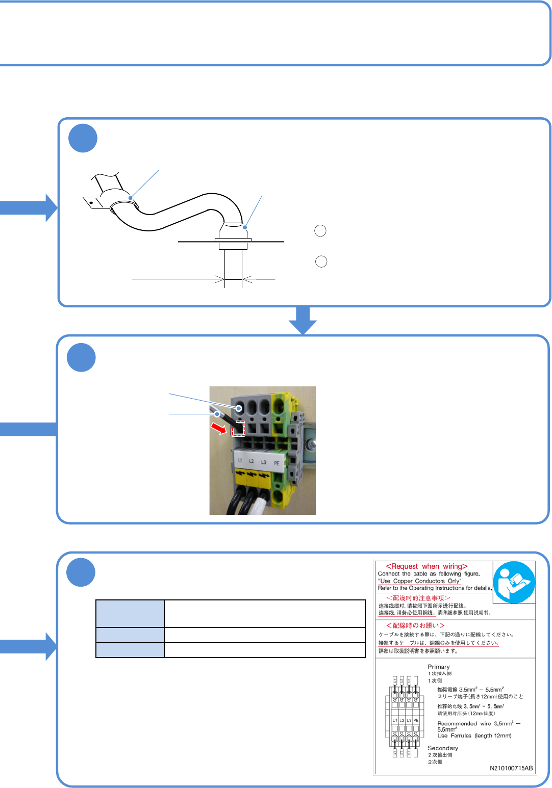 SEJM8DC - MB - 11E - 00 NPM - DX 主电源 的连接 主电源的连接 11 -4-2 -1 1 2 6 必须以 50 N 拉引电缆,确认是否 完全被 固定 。 5 ● 完全插入,使套头端 子的绝 缘被 覆 部完全进入端子 台里面。 ● 连接 PE 线 ( 绿 / 黄 ) 后, 按照 L1 → L2 → L3 的顺序连接 。 L1 L2 L3 PE L1 L2 L3 PE 1 2 1 工程师手册 11 - 4 -…
